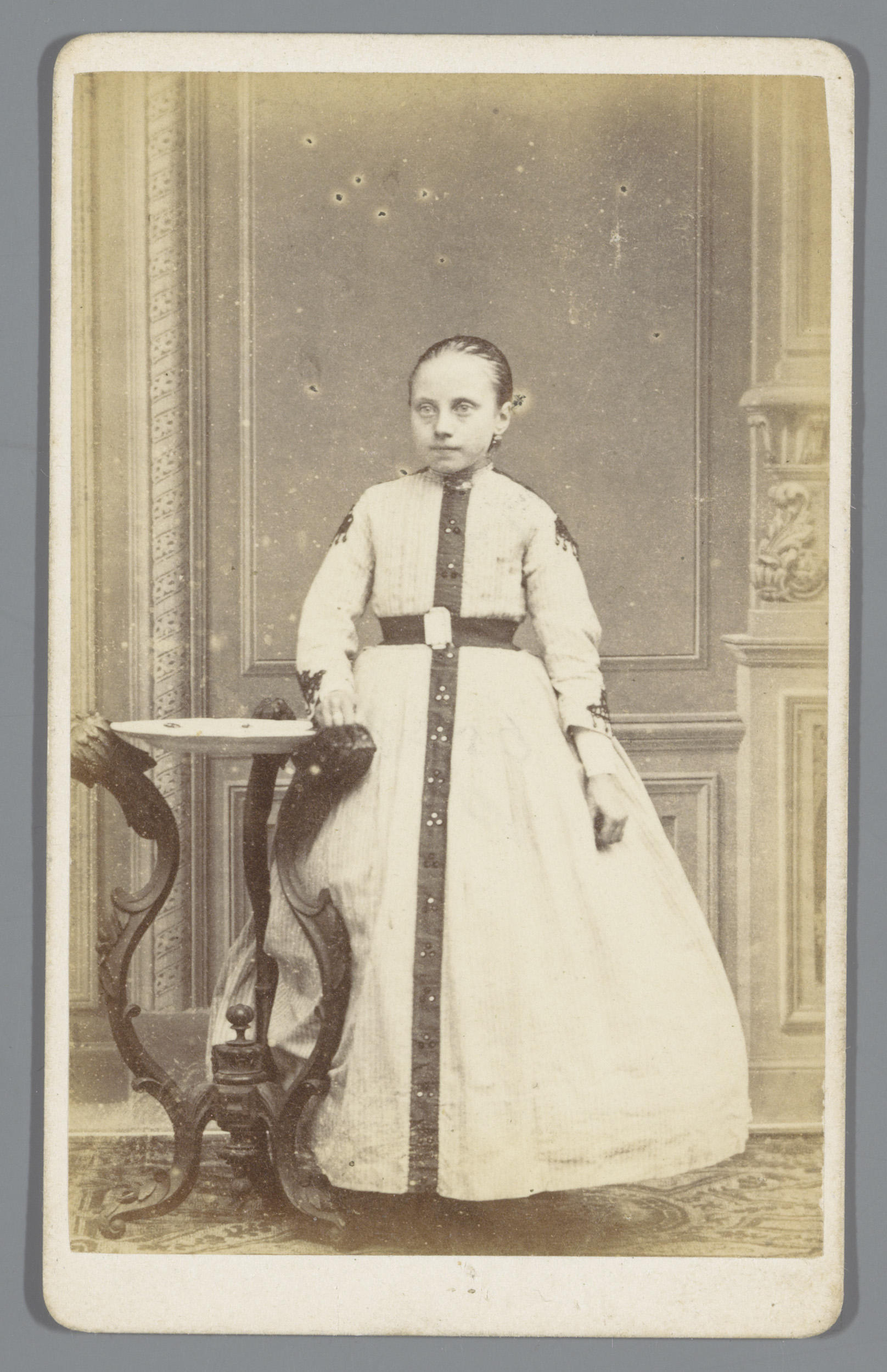 Portret van een onbekend meisje, staande naast een t...