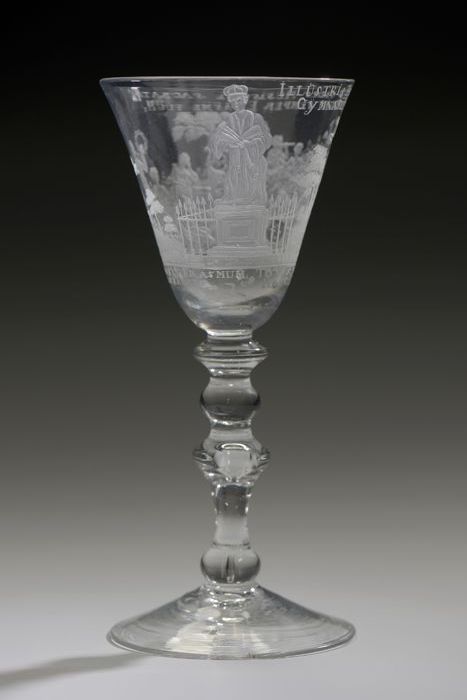 Kelkglas gegraveerd met Apollo en de negen muzen en ...
