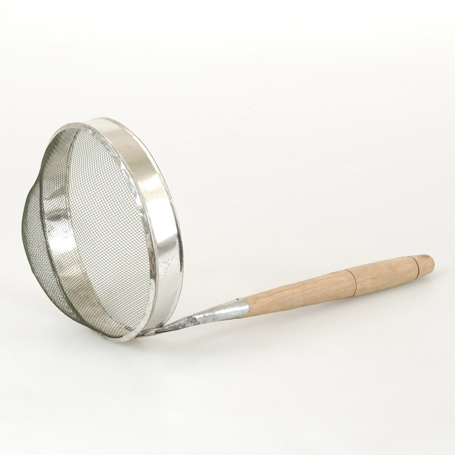 Metalen zeef met houten handvat voor huishoudelijk g...