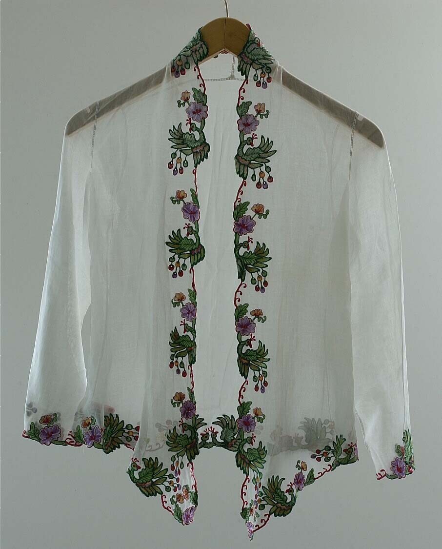 Kokerrok van lurikweefsel met versiering van gouddraad
