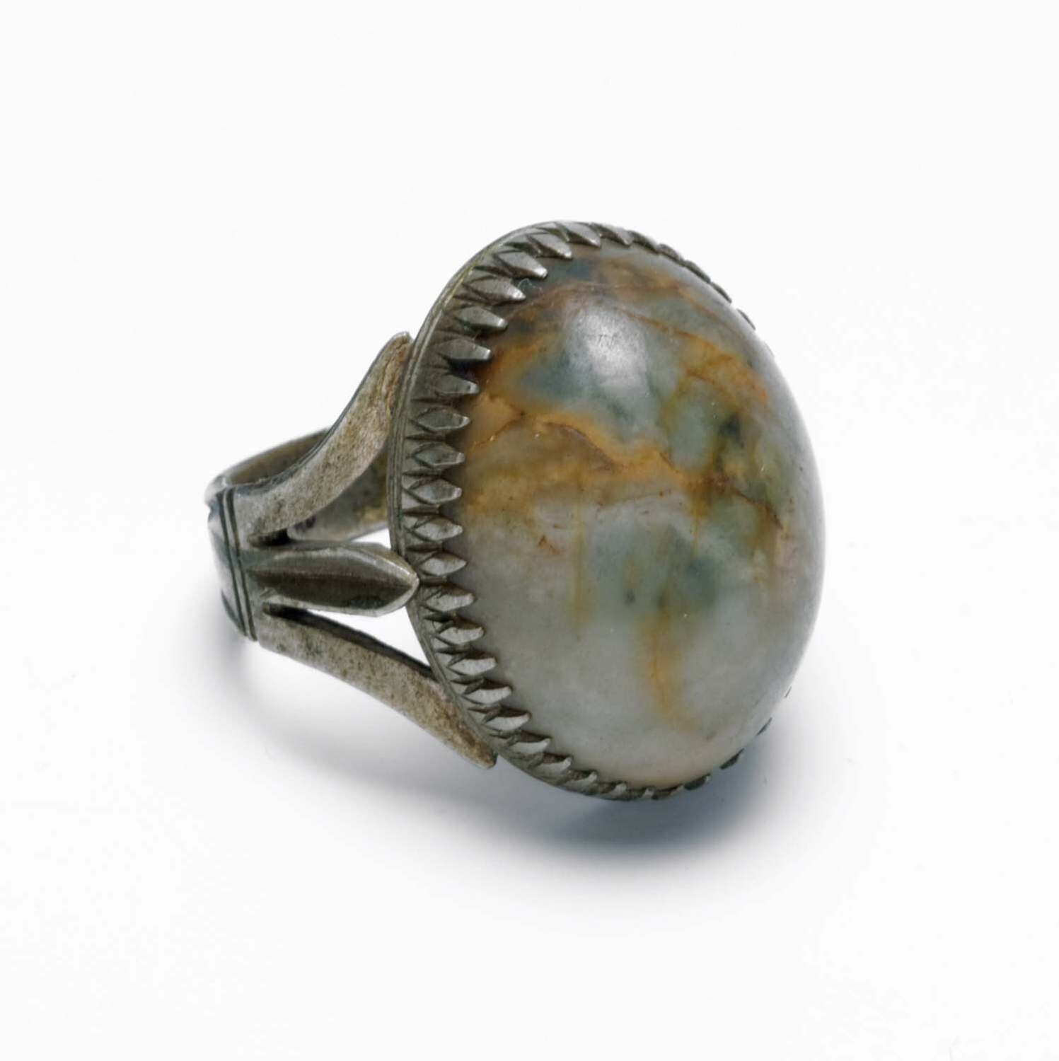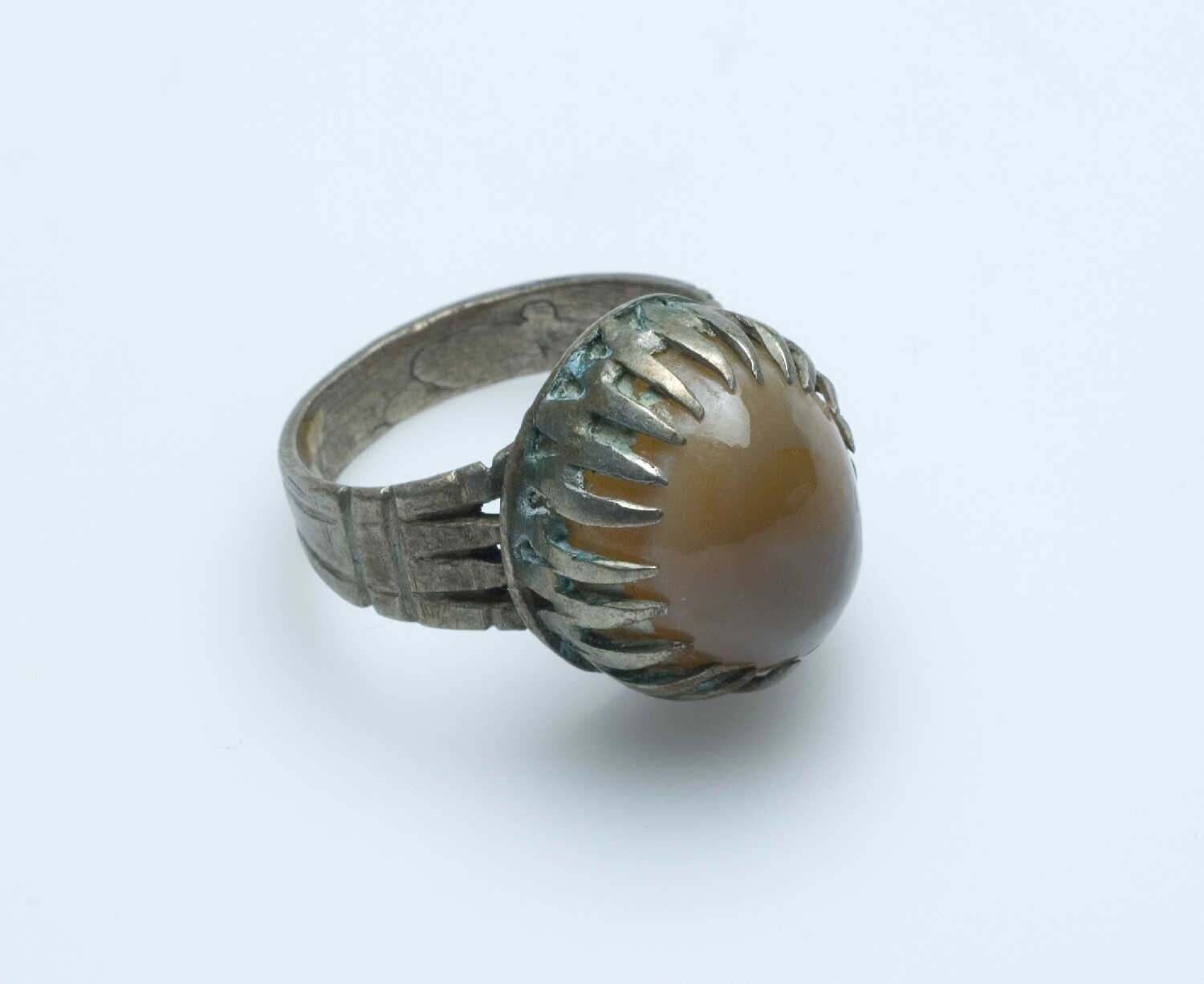 Zilveren vingerring met een ovale bruinachtige gesle...