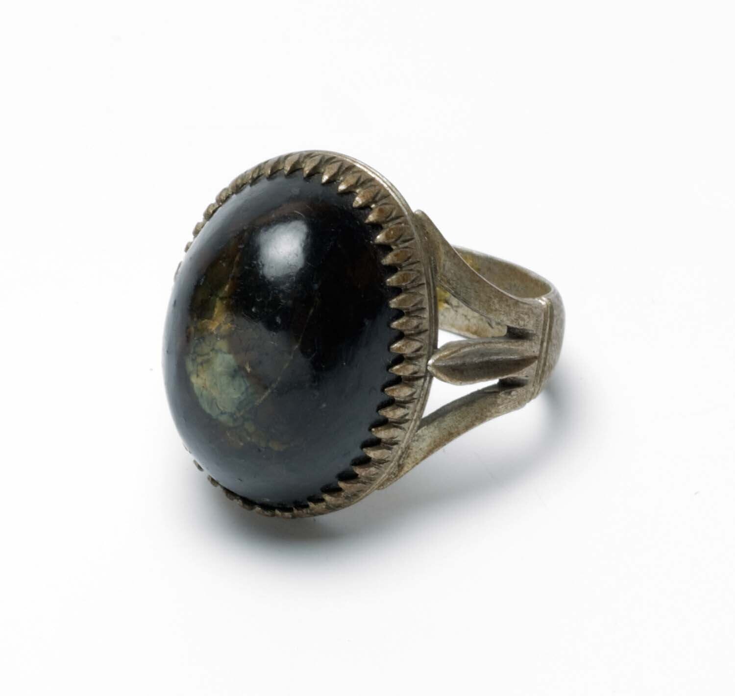 Zilveren vingerring met een ovale zwarte geslepen steen