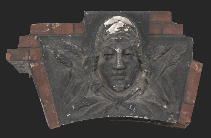 Gevelsteen met vrouwenhoofd en korenaren, afkomstig ...
