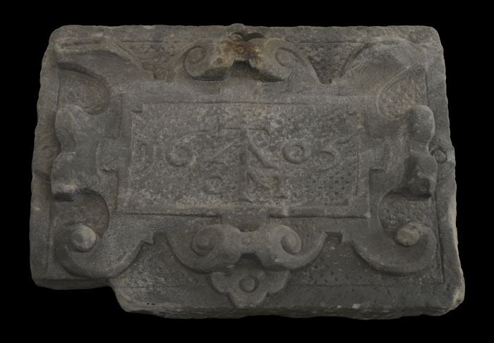 Gevelsteen met abstracte ornamenten, afkomstig van g...