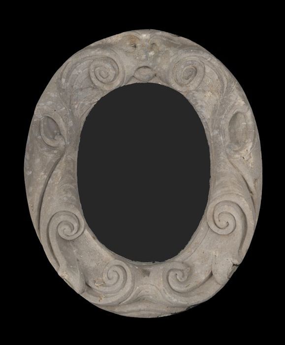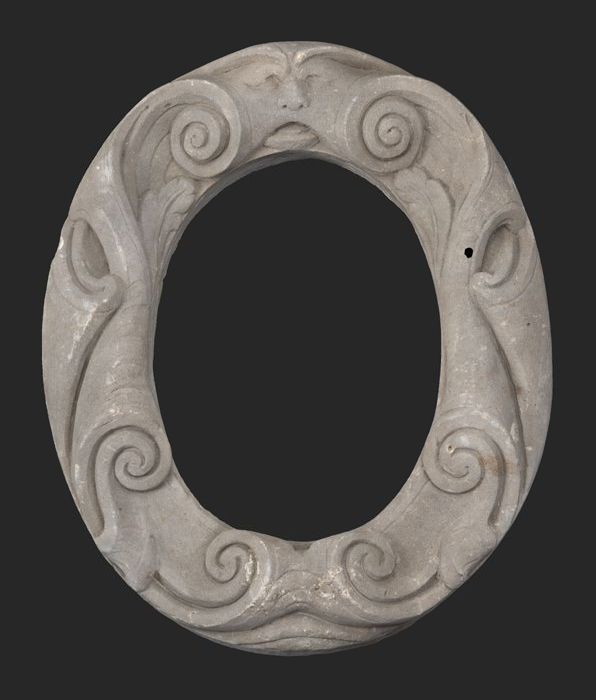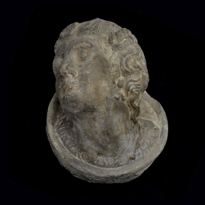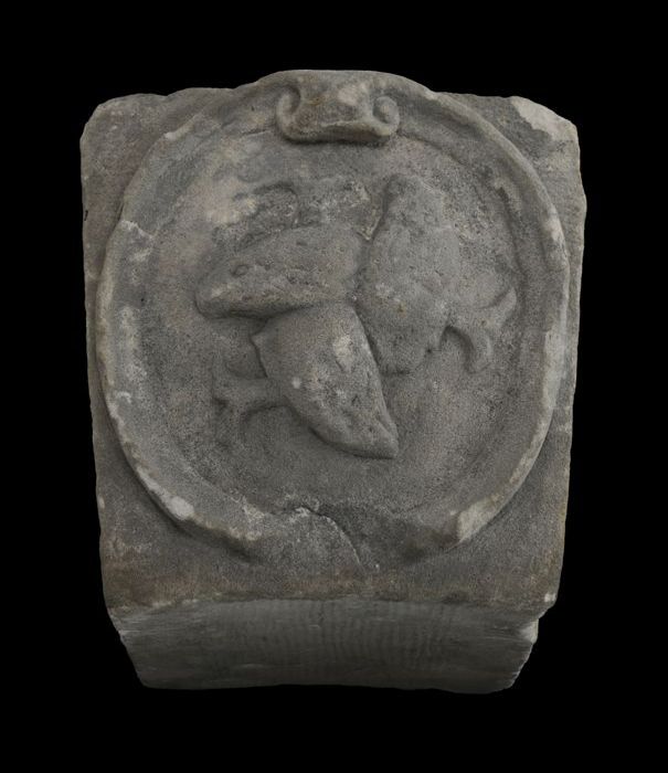 Gevelsteen met vrouwenhoofd en ranken, afkomstig van...