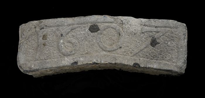 Gevelsteen met jaartal "1607", afkomstig van de Bare...