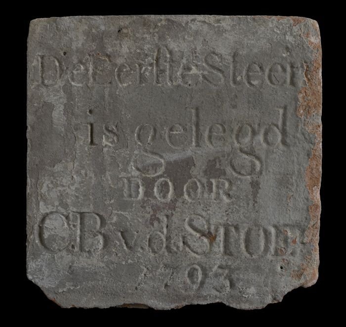 Gevelsteen met "MD.CC.II is den eersten steen gelegd...