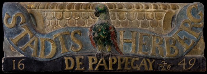 Gevelsteen stadsherberg De Pappegay met datum 28 feb...