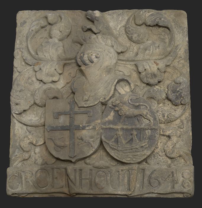Gevelsteen met wapens van de kaaskoper Adriaen Groen...