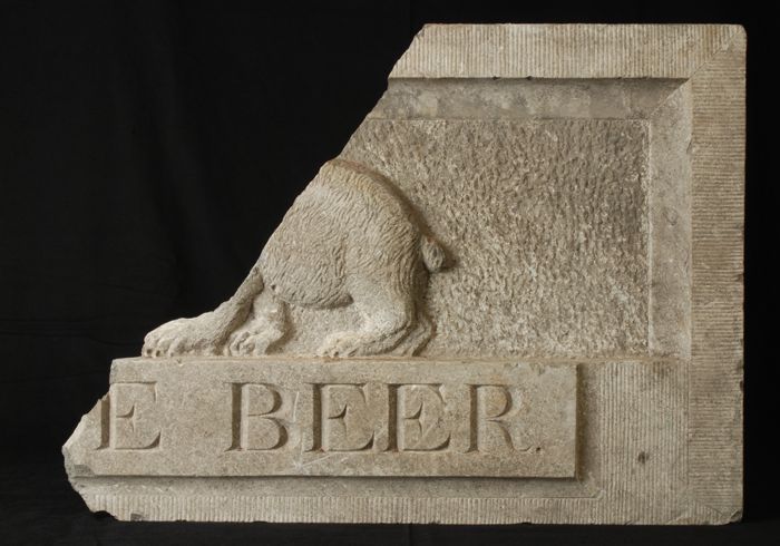 Fragment hardstenen gevelsteen "(D)E BEER"