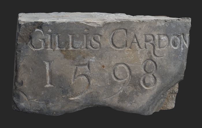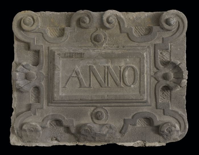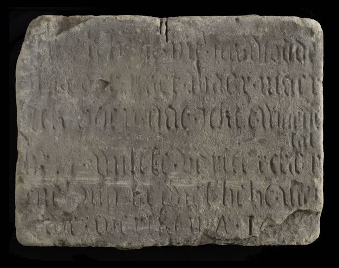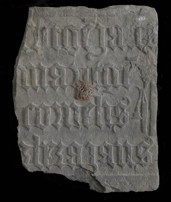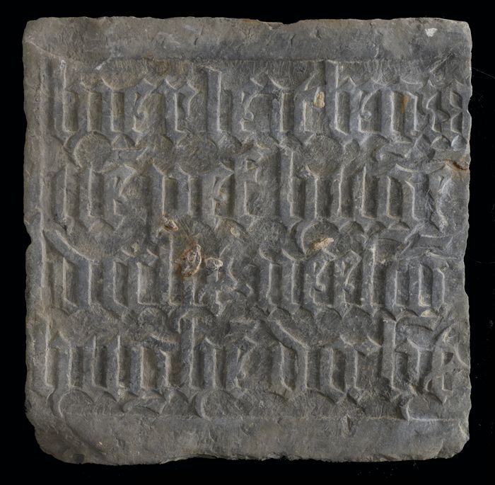 Gevelsteen met tekst in gotische letters