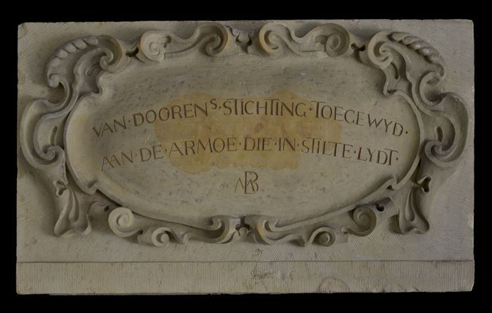 Gevelsteen met "Van Dooren's Stichting toegewijd ..."