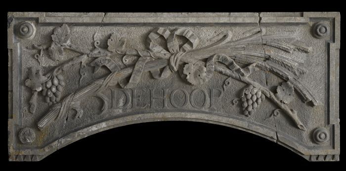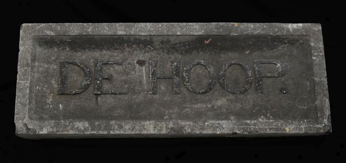 Hardstenen gevelsteen met tekst "DE HOOP"