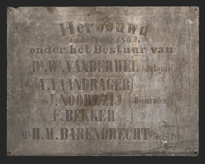 Gevelsteen met tekst "Herbouwd in het jaar 1862, ond...