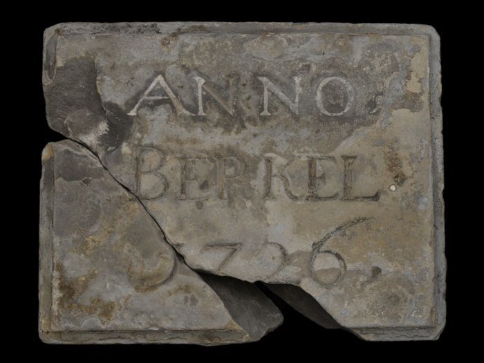 Steen uit de Donkere of Bergse sluis aan het Steiger...