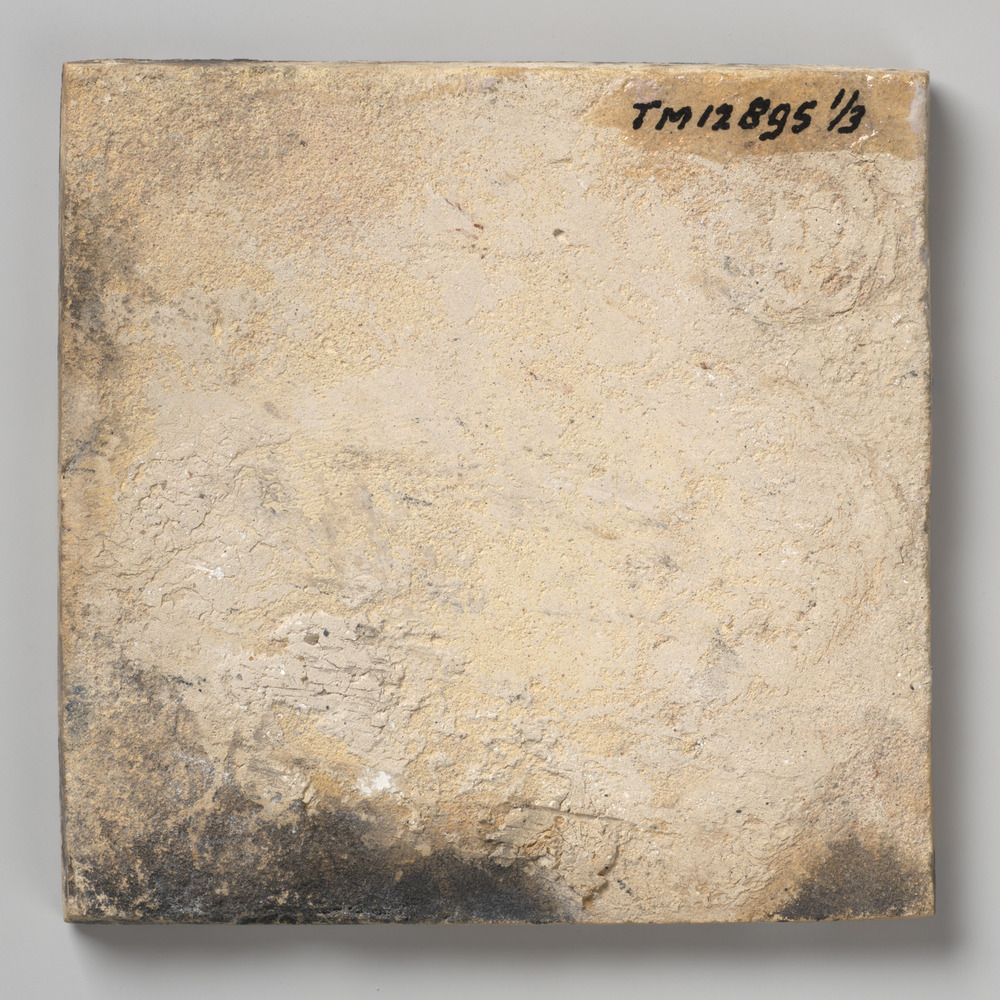 Tegel van keramiek met tinglazuur, voorstellende: he...