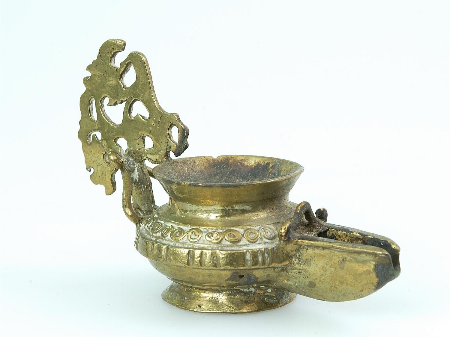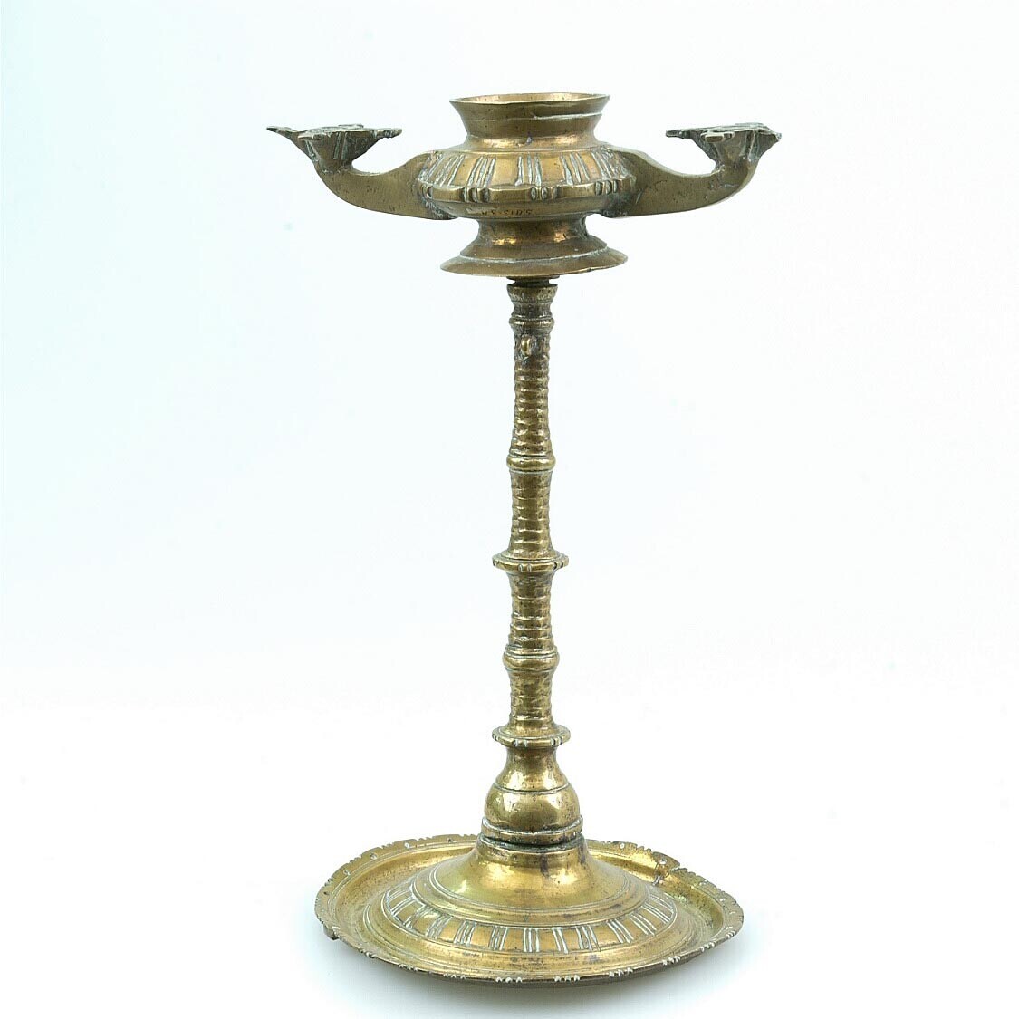 Onderdeel van geelkoperen tweepits olielamp