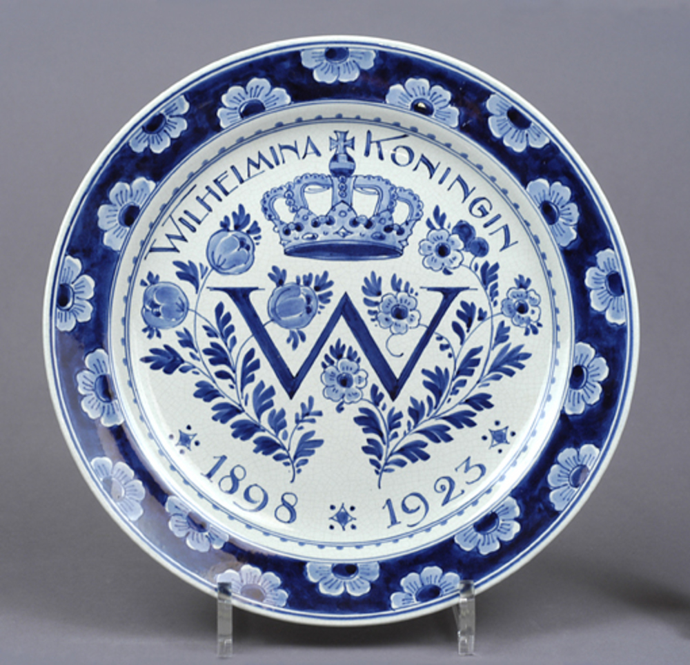 herinneringsbord van keramiek tgv het 25 jarig reger...