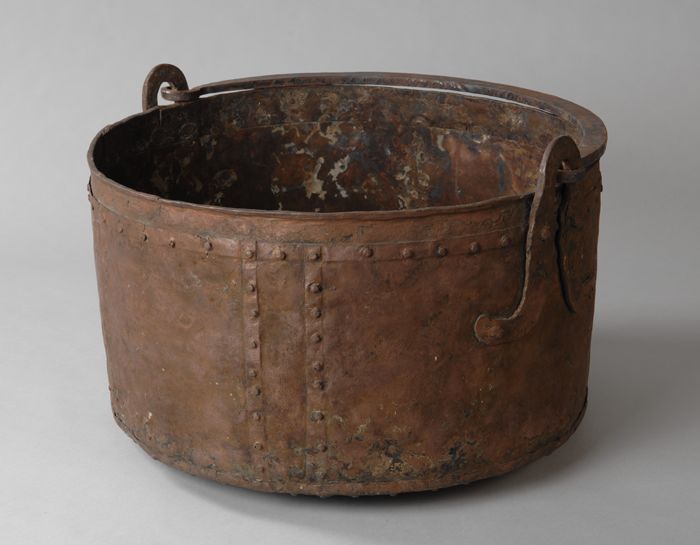 Aardewerk kookkan, grape op drie poten, spaarzaam lo...