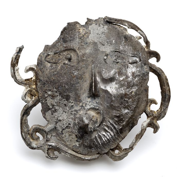 Tinnen gezicht met ajour rand, maangezicht met uitge...