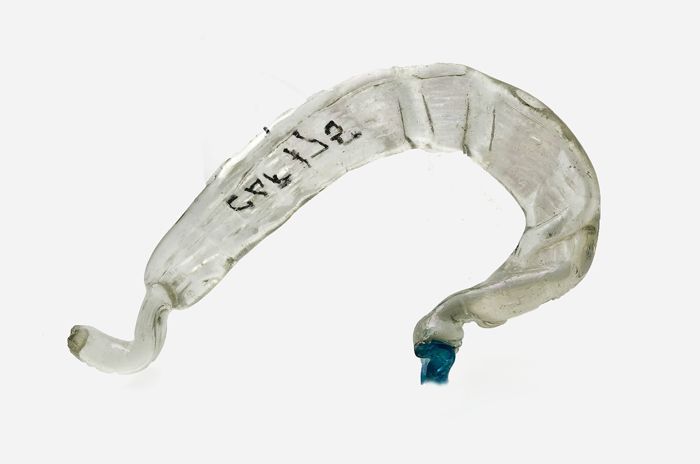 Vier fragmenten van glazen karaf, twee halsfragmenten