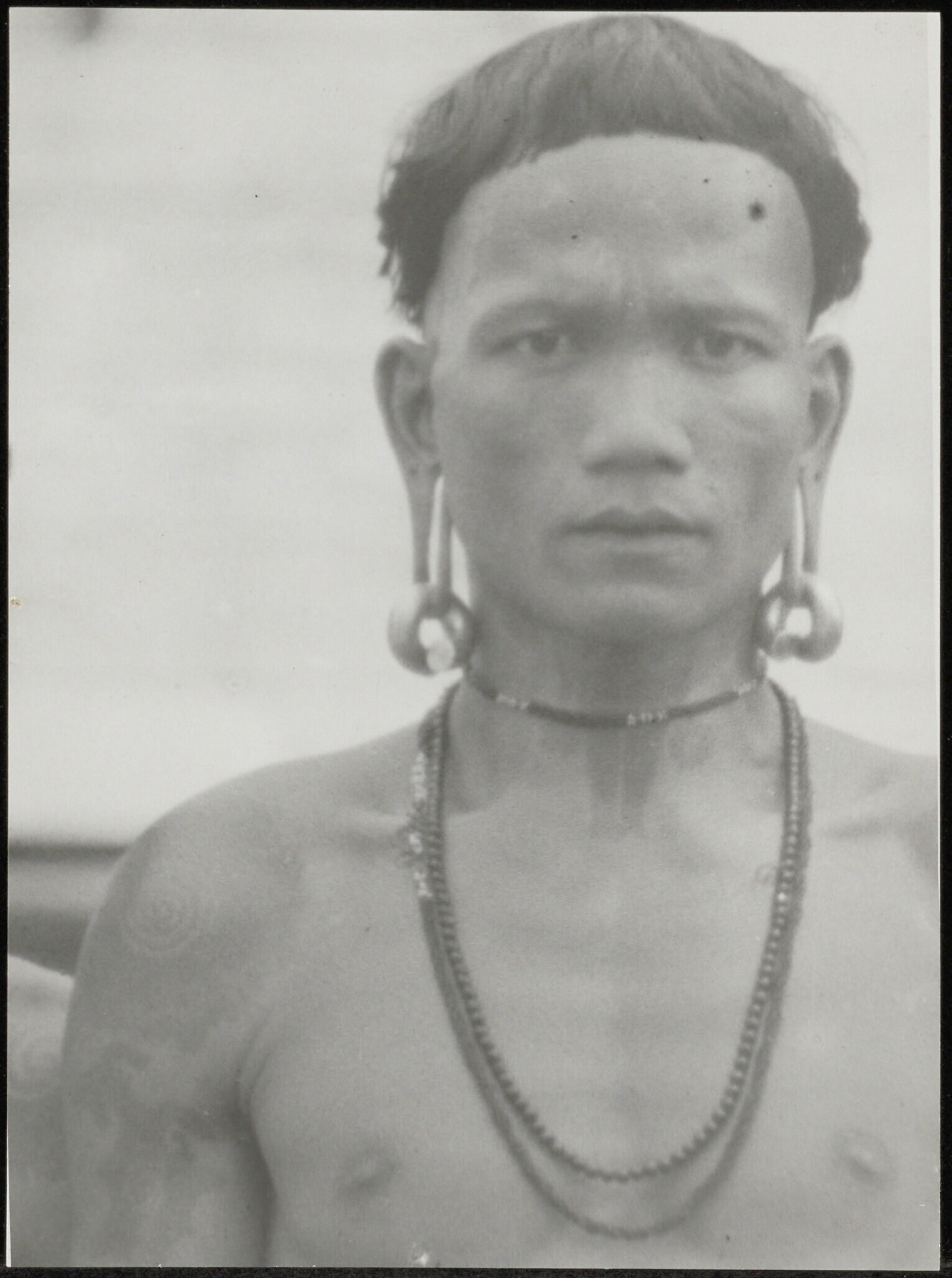 Portret van een Dayak man met kort geknipt haar, een...