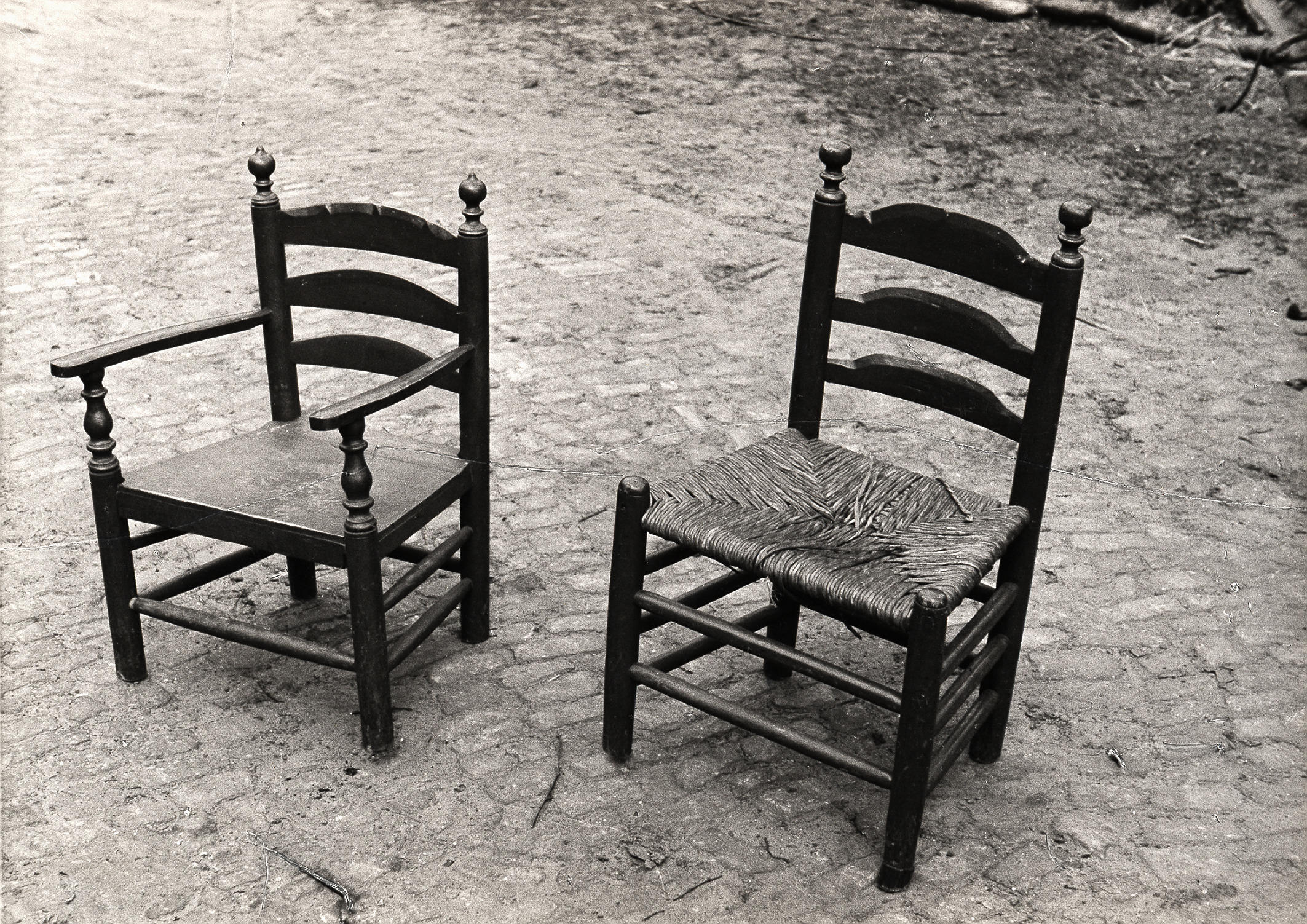 Twee stoelen voor kinderen, Staphorst, 1944 (zwart-w...
