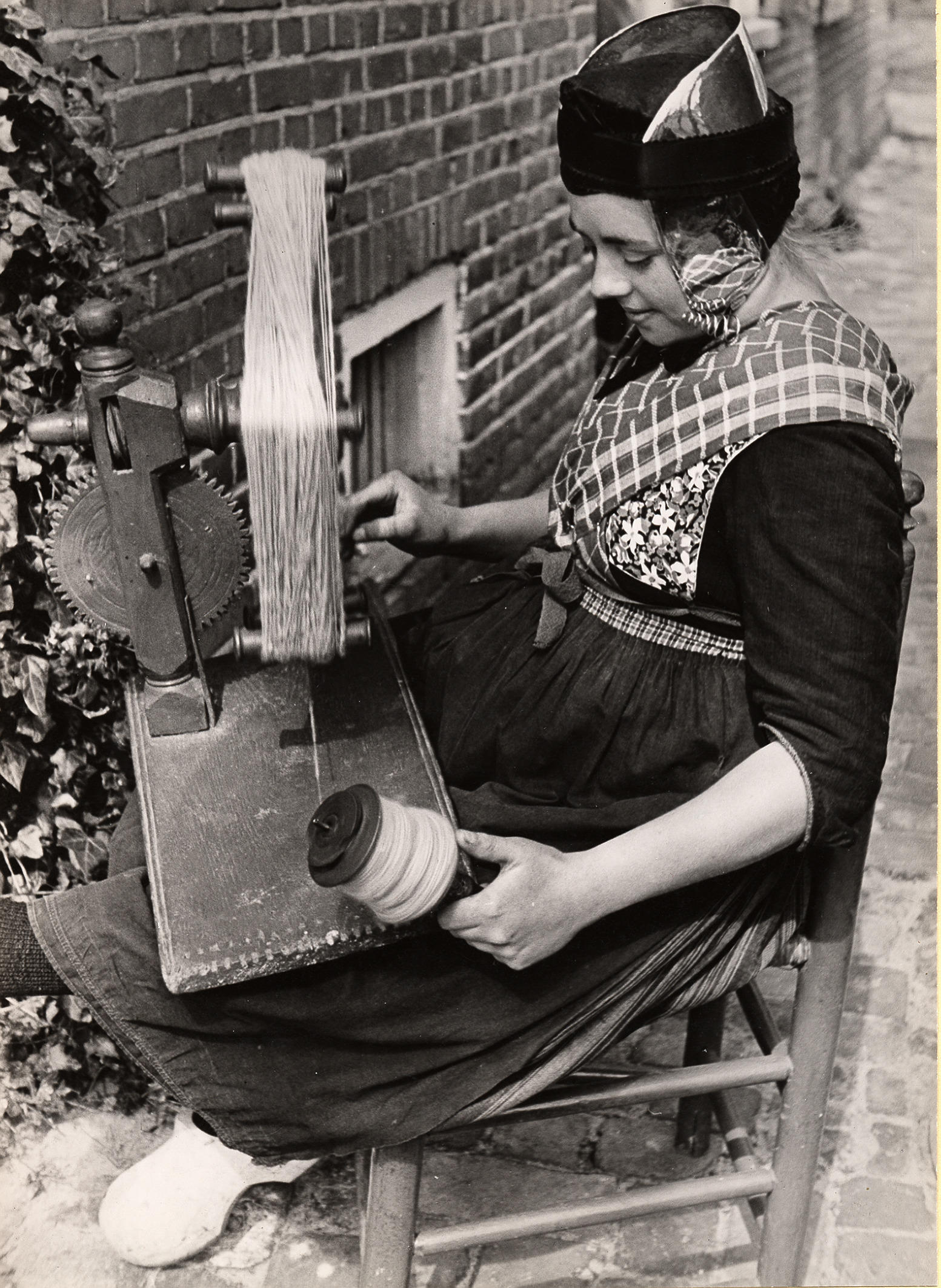 Twijnen van wol, Rouveen, 1944 (zwart-wit foto)