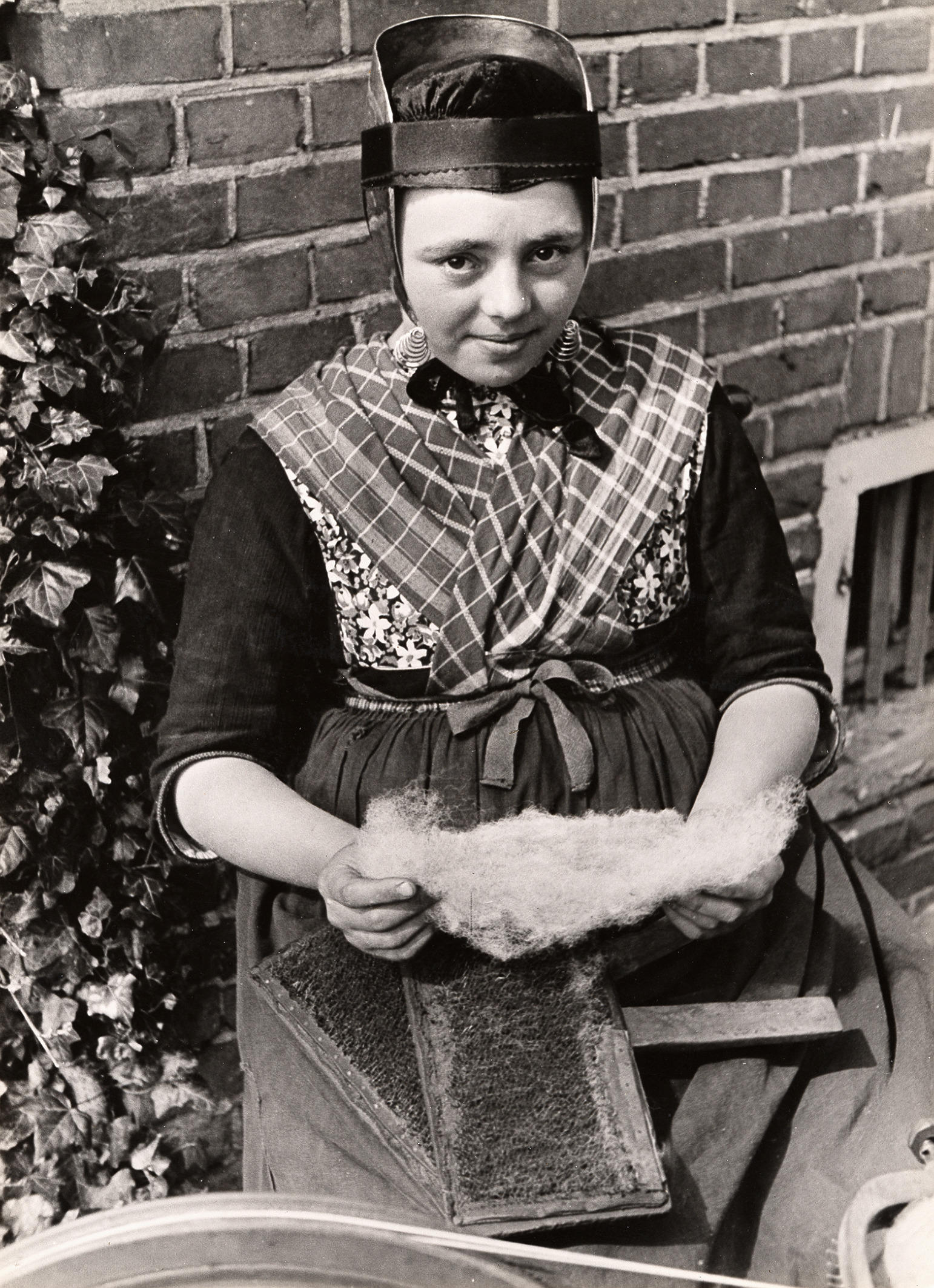 Kaarden van wol, Rouveen, 1944 (zwart-wit foto)
