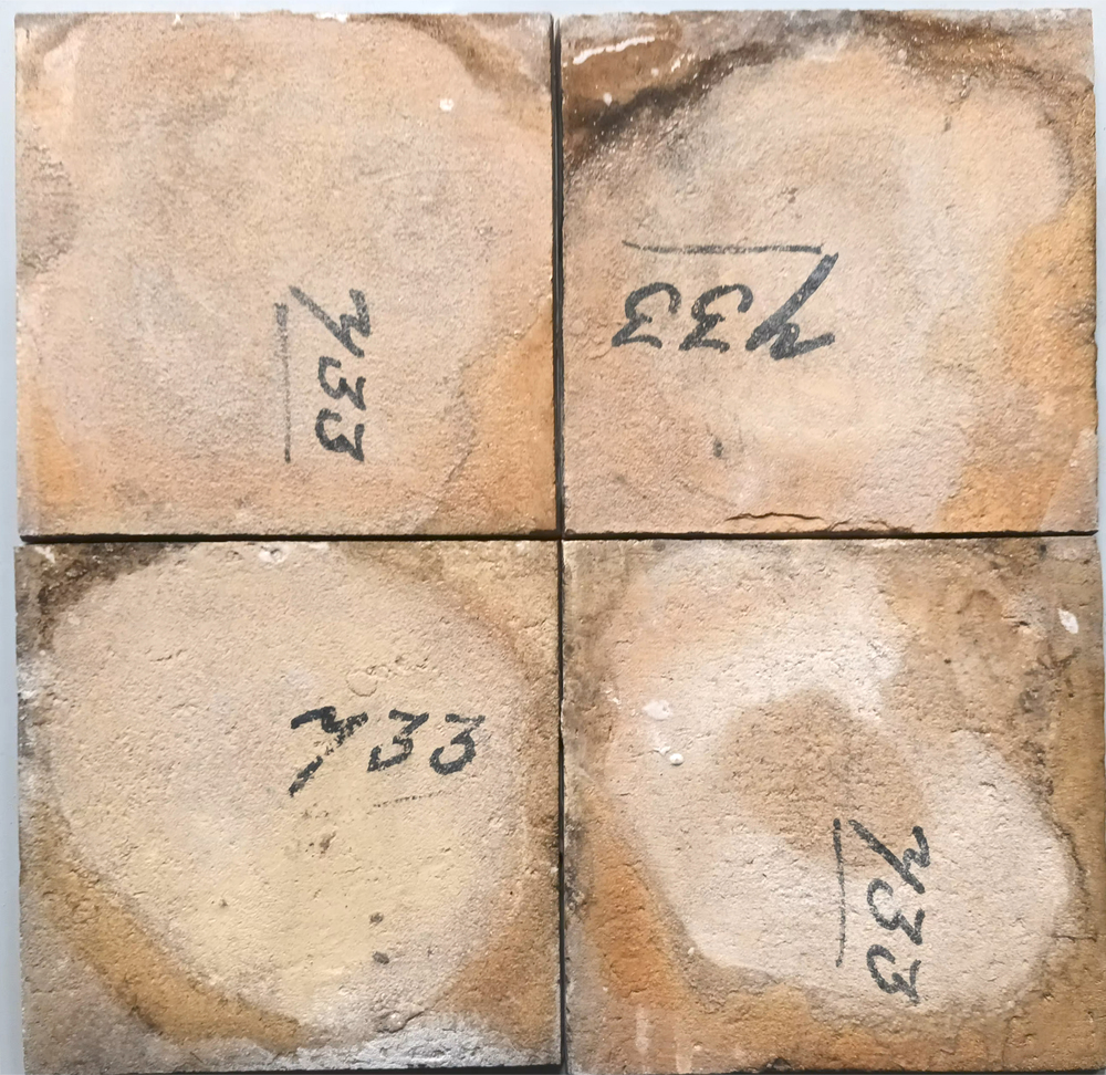 tegelveld, bestaande uit negen tegels van aardewerk ...