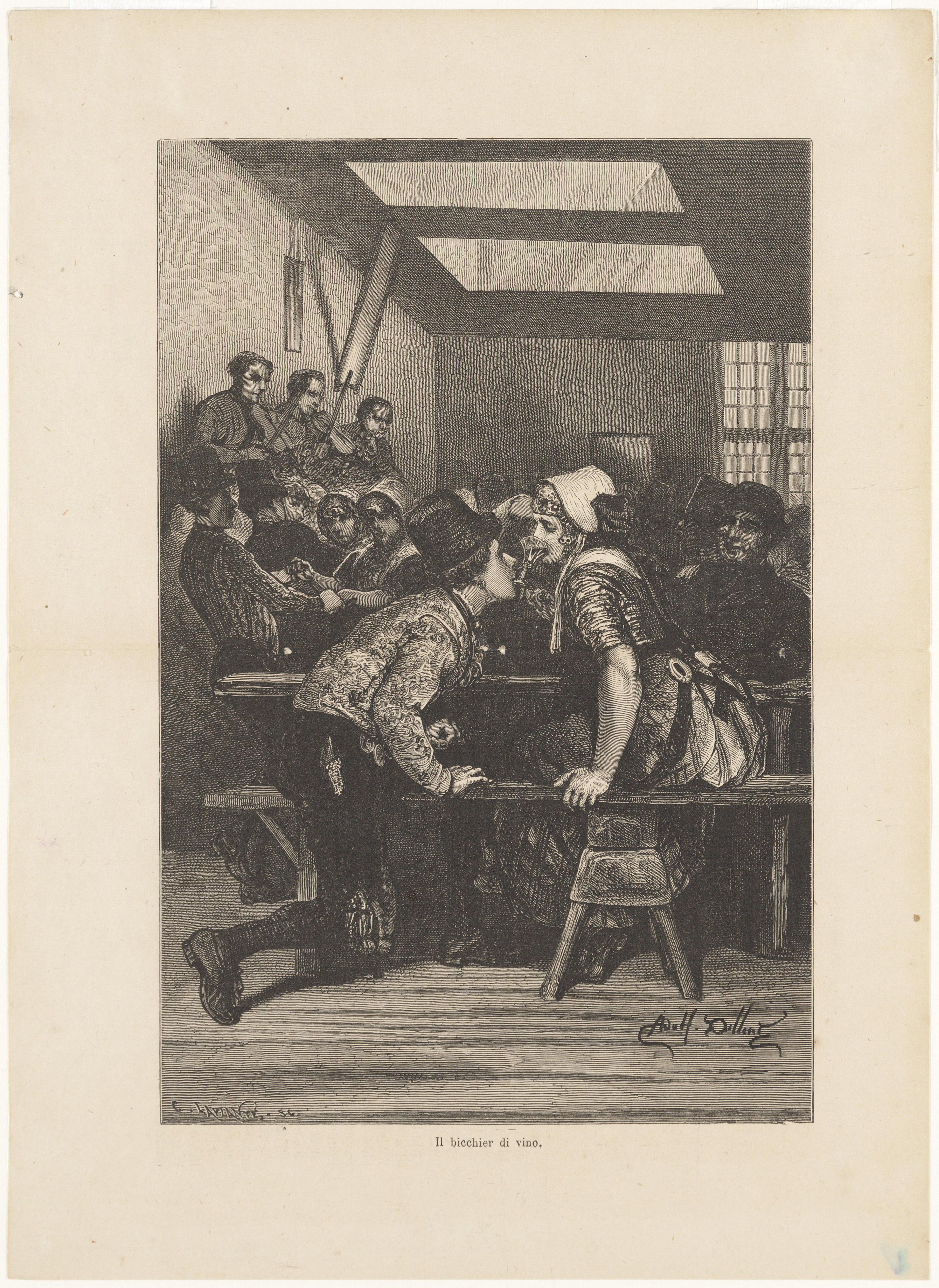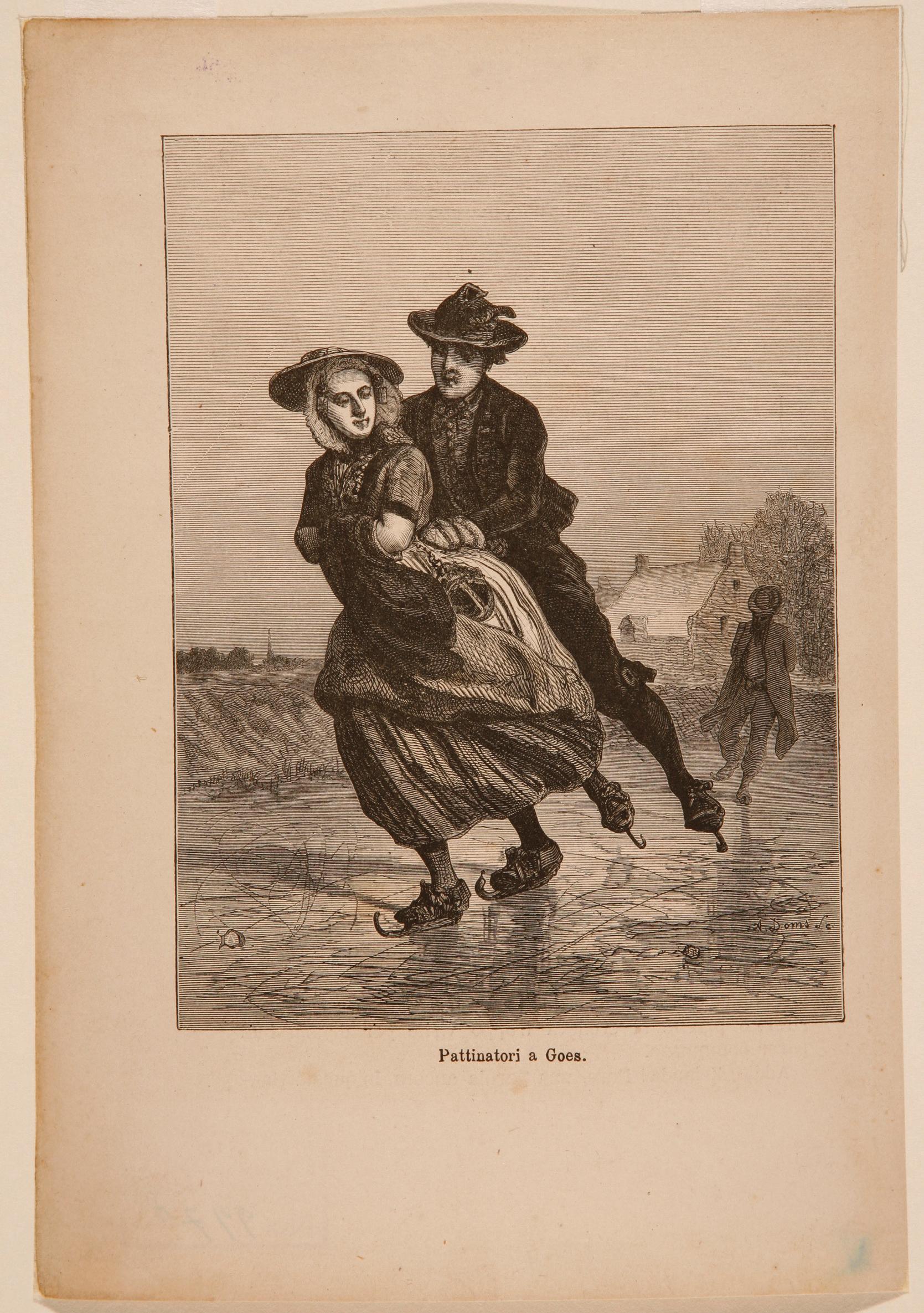 Boekillustratie van twee schaatsers bij Goes, circa ...