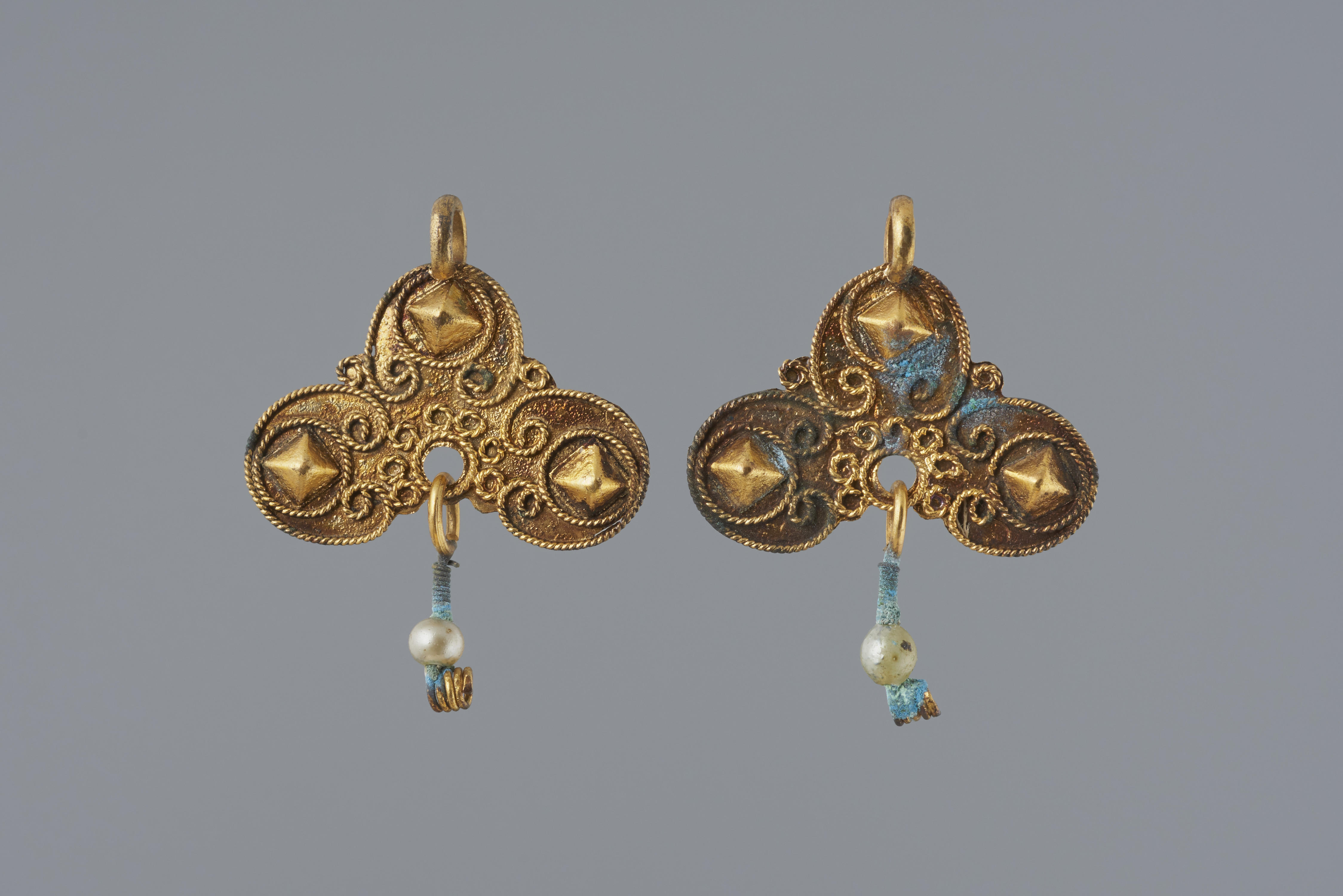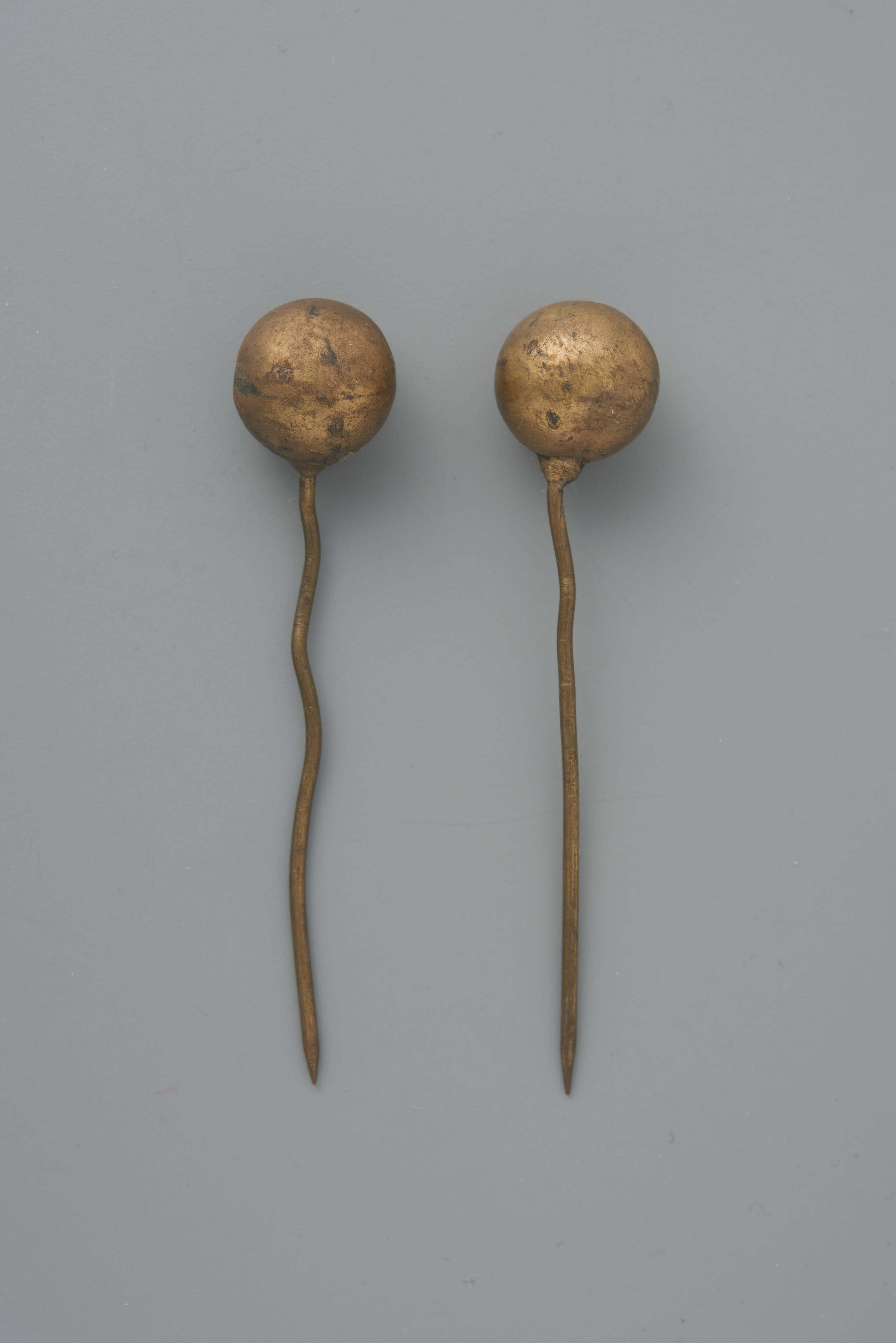Paar vergulde messing spelden voor een pop, Zuid-Bev...
