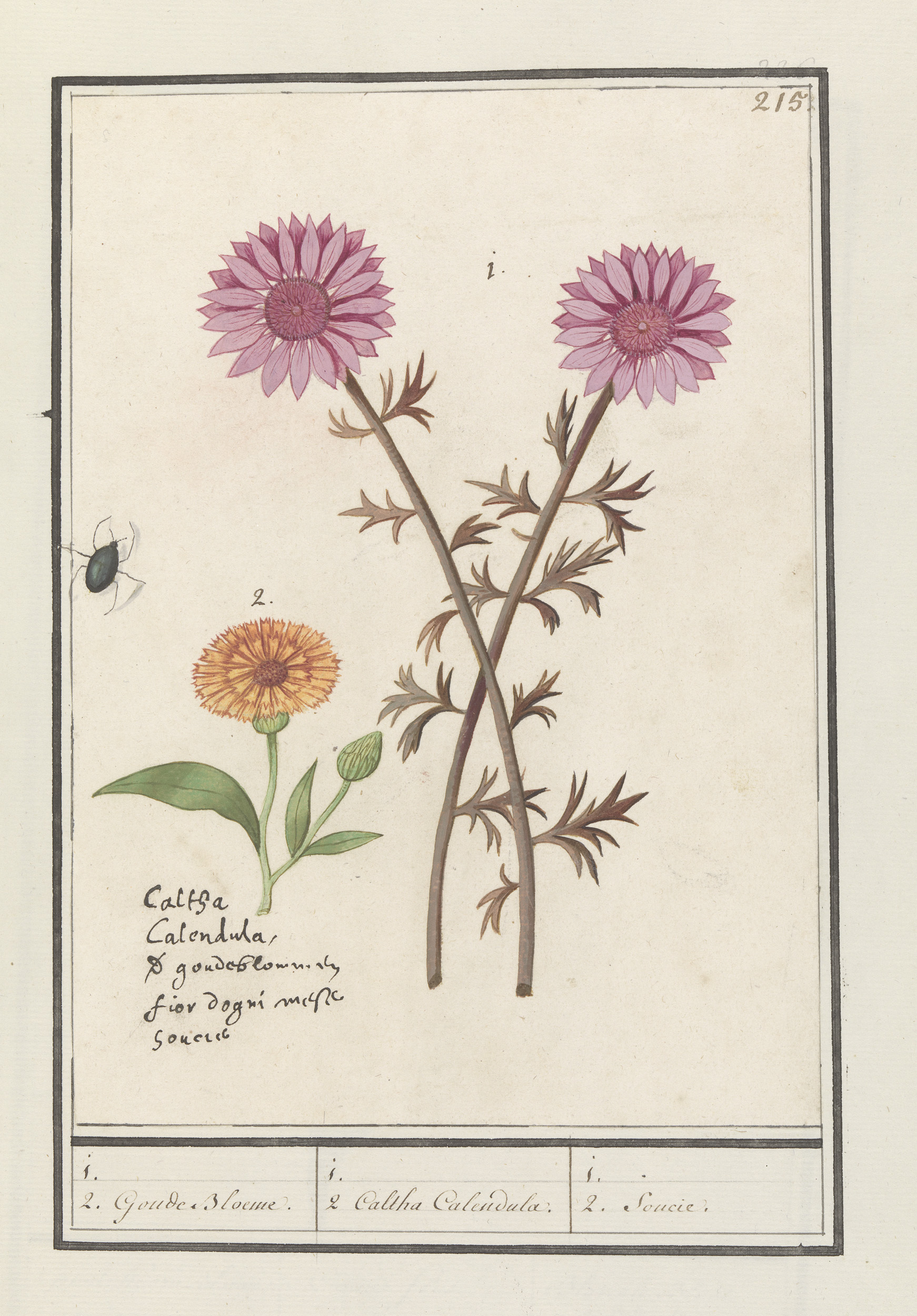 Roze bloem (onbekend) en goudsbloem (Calendula offic...