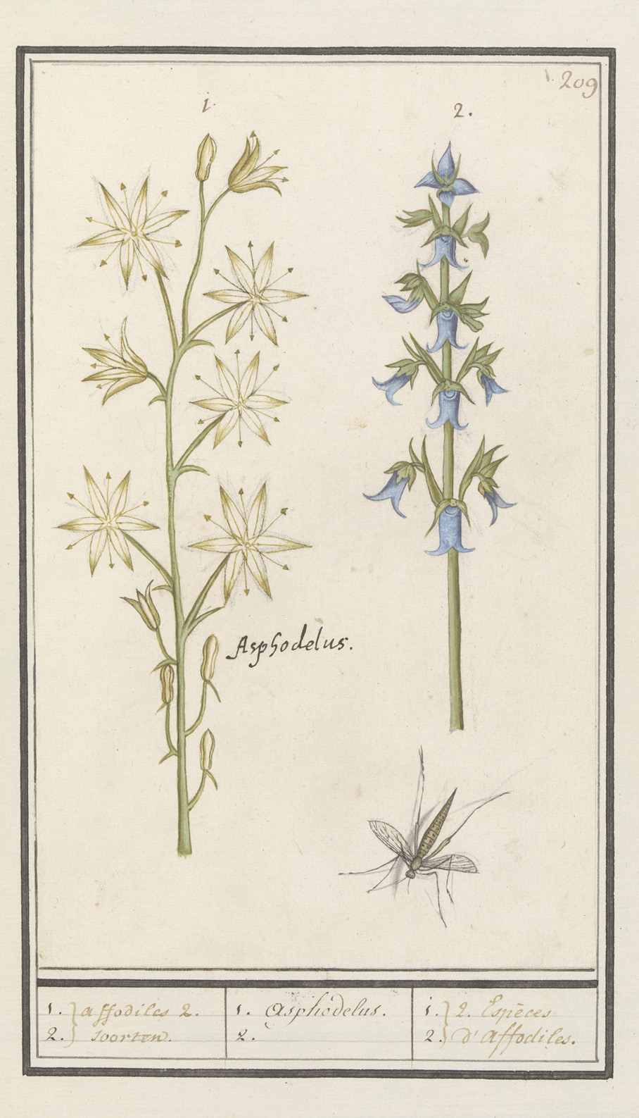 Affodil (Asphodelus) en Ruig klokje (Campanula trach...