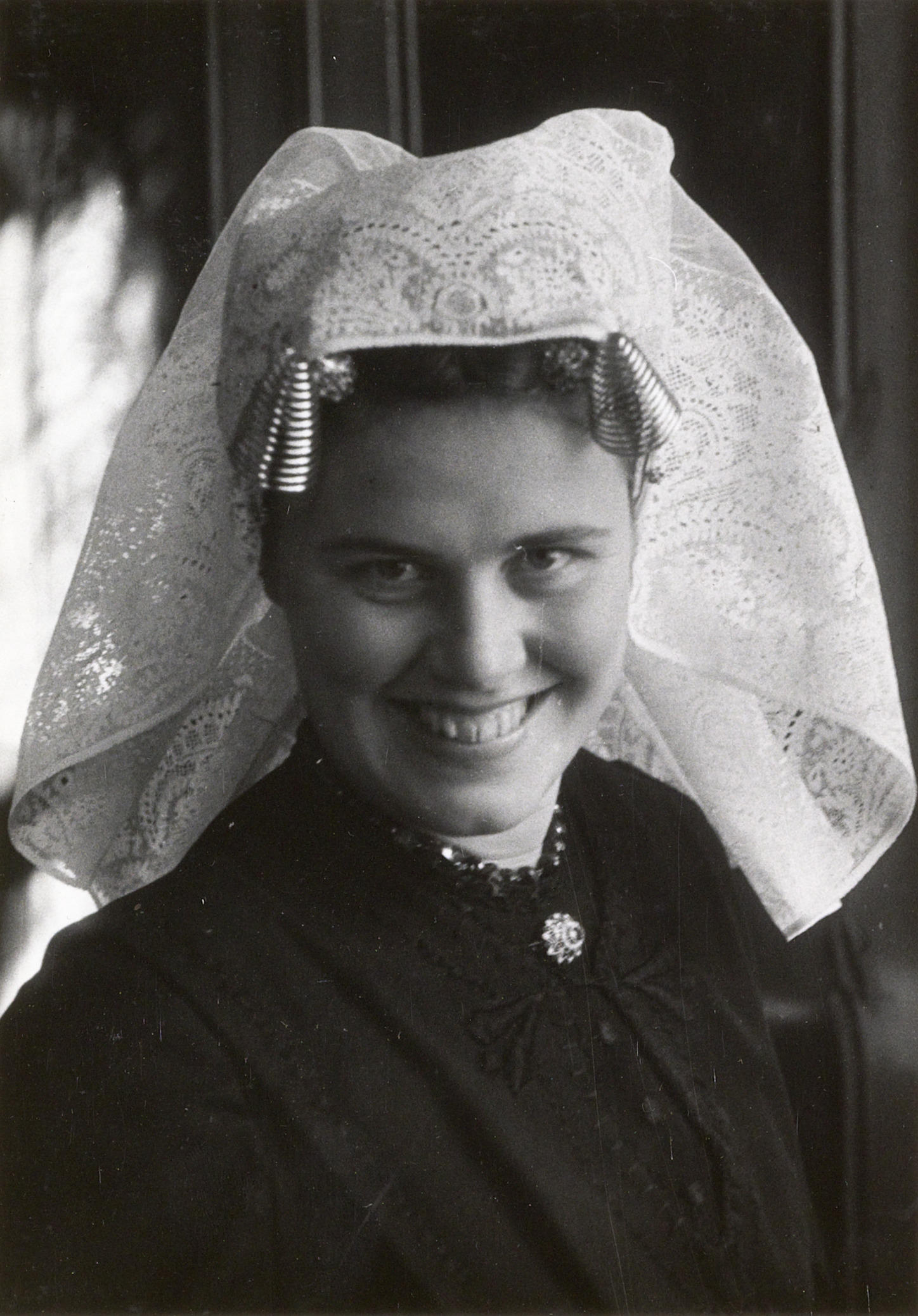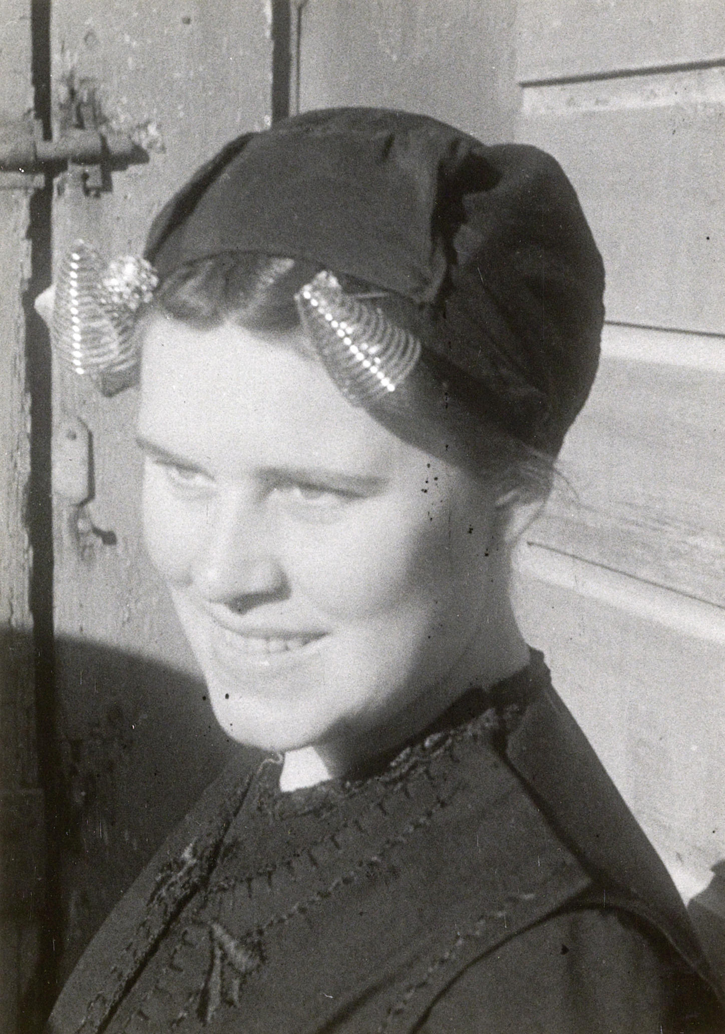 Eefje Schipper in Marker dracht, 1943 (zwart-wit foto)