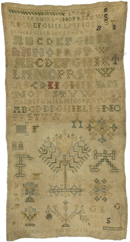 Witwerklap met alfabetten en randen gemerkt M.I.S., ...