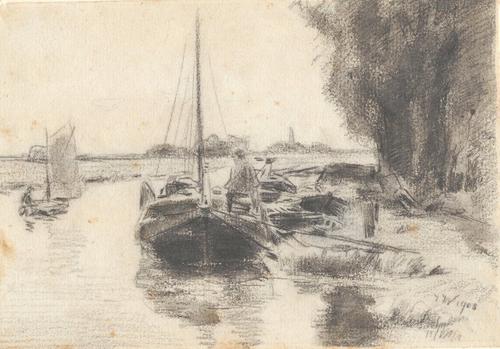Aquarel van de Noorderdwarsvaart te Drachten