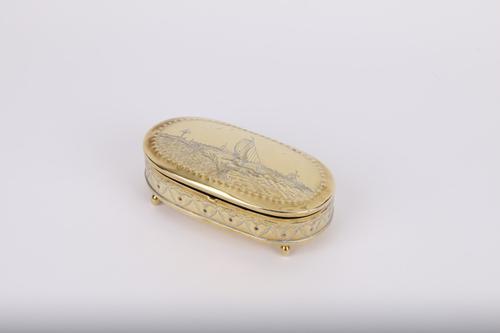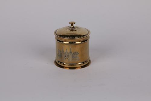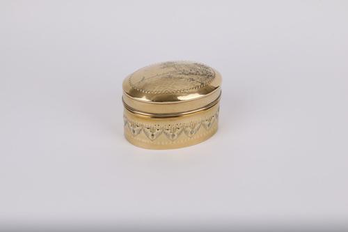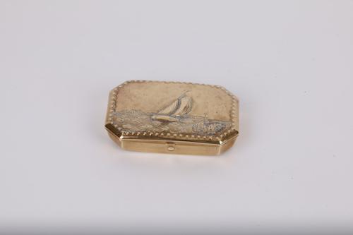 Koperen tabaksdoos met zeilschip