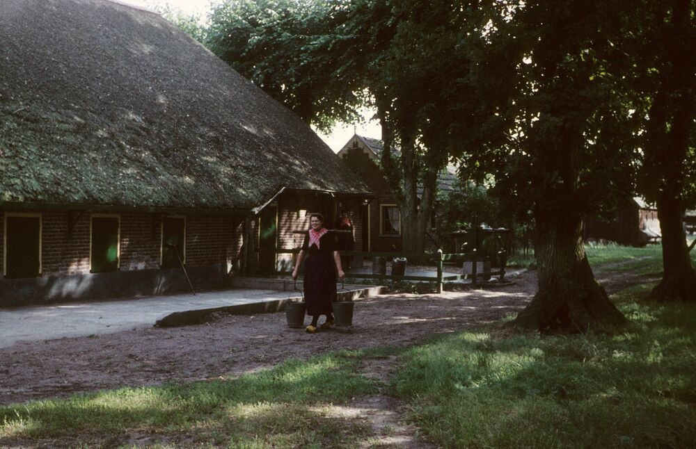Portret ten voeten uit van een Veluwse boerin met pa...