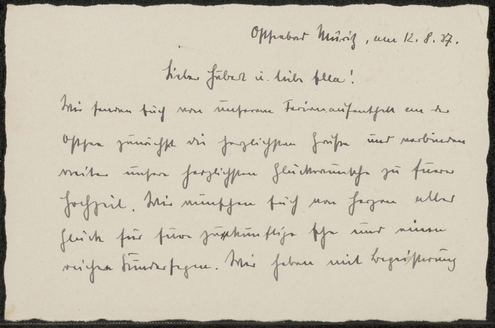 Kaartje aan Hubert en Ella van ??. d.d. 12-08-1937