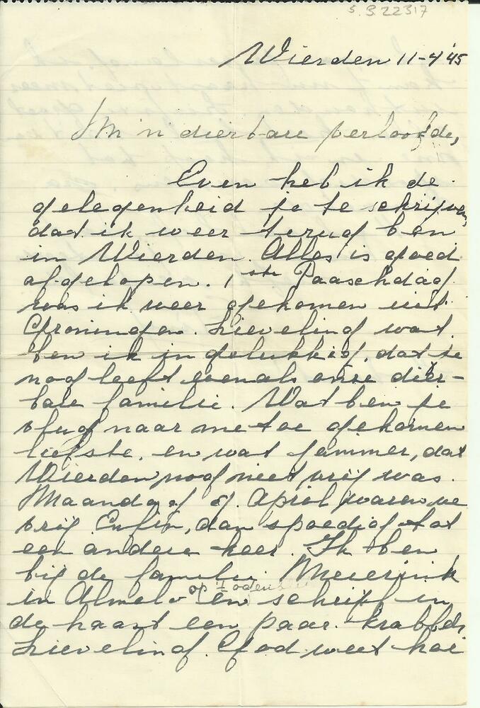 Brief van Tiny Middendorp aan verloofde, 11 april 1945