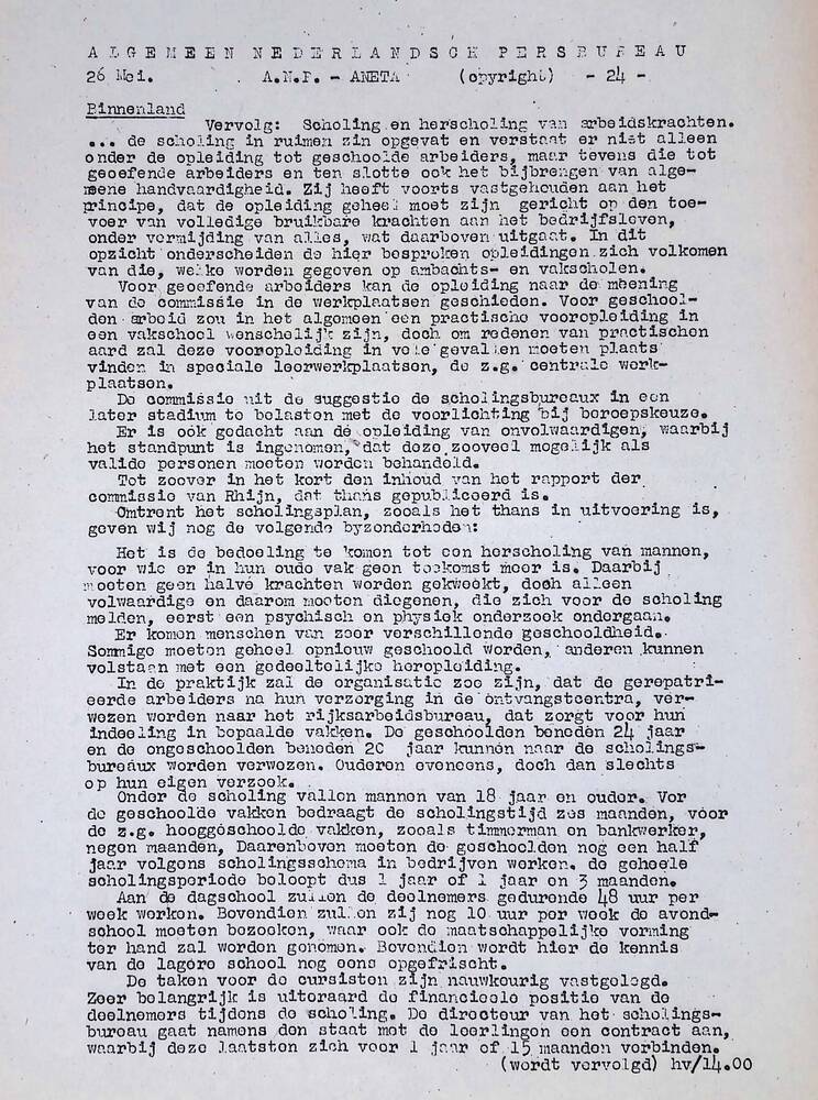 Algemeen Nederlandsch Persbureau, mededelingen, 28 m...