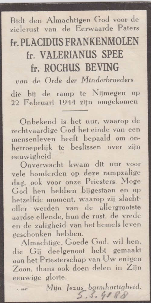 bidprentje P. Frakenmolen, V. Spee, R. Beving