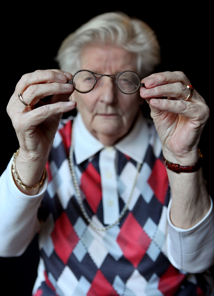 Het topstuk (Brillenkoker met oude bril uit 1794) va...