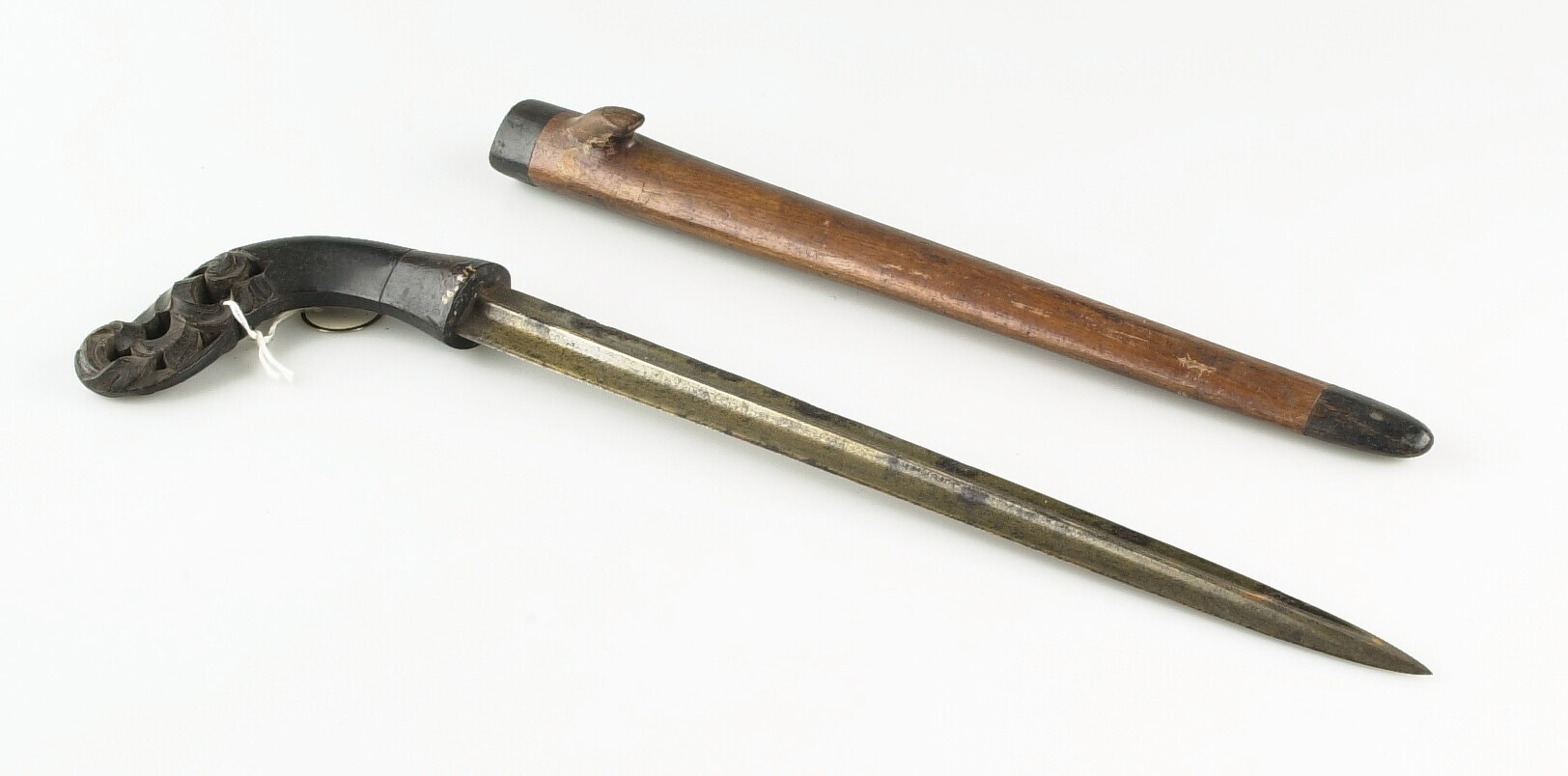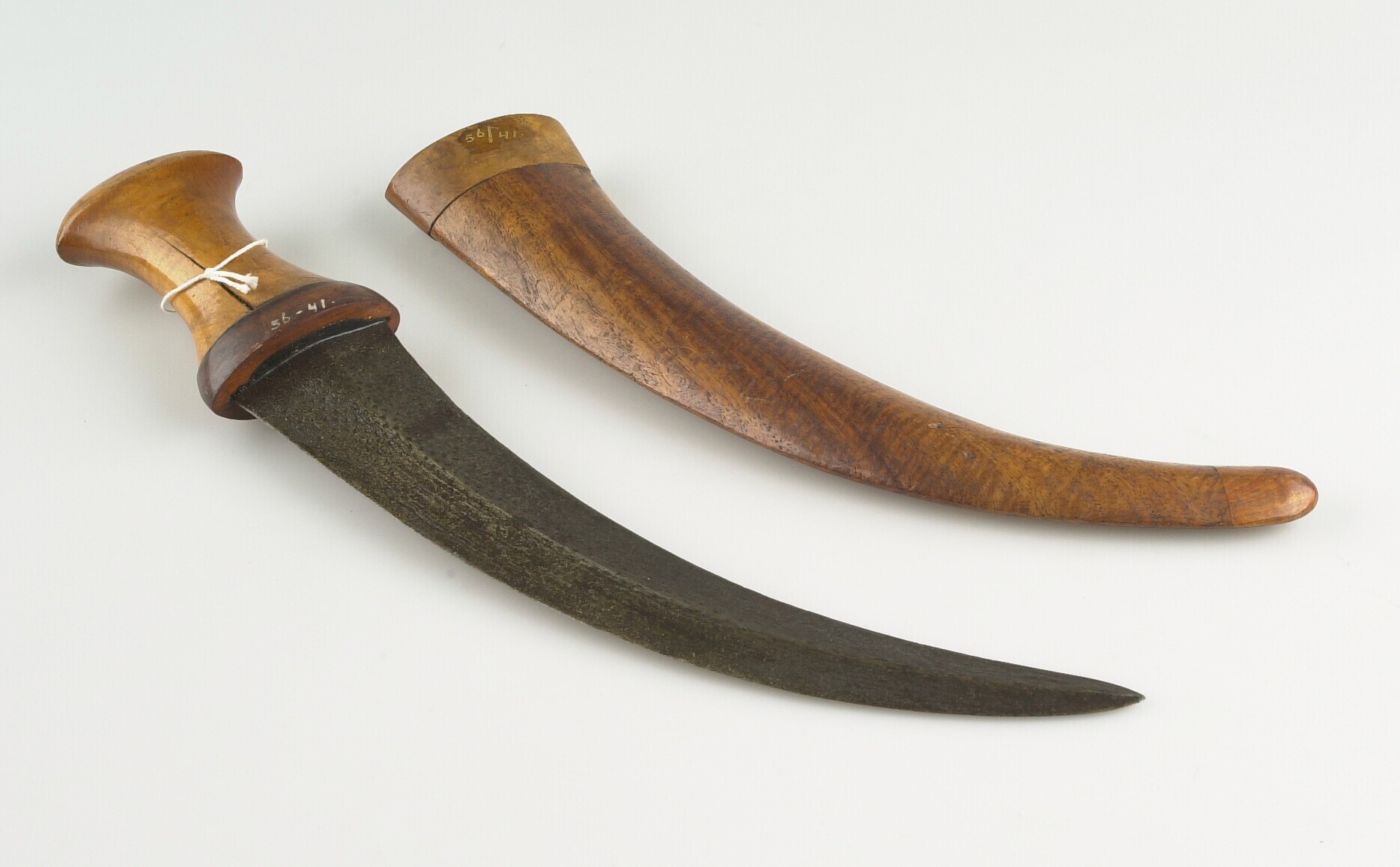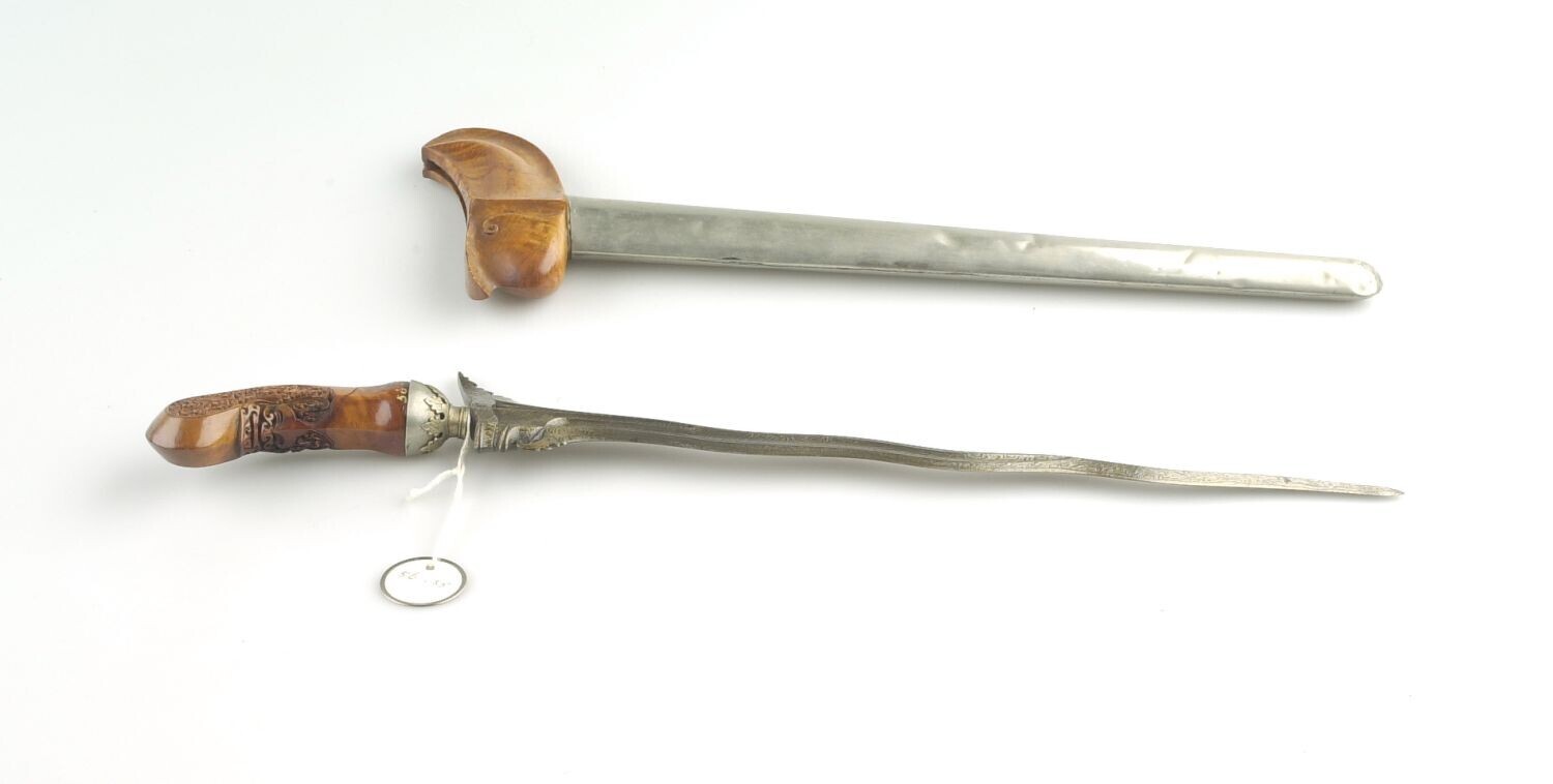 Rechte dikj met houten greep en houten schede