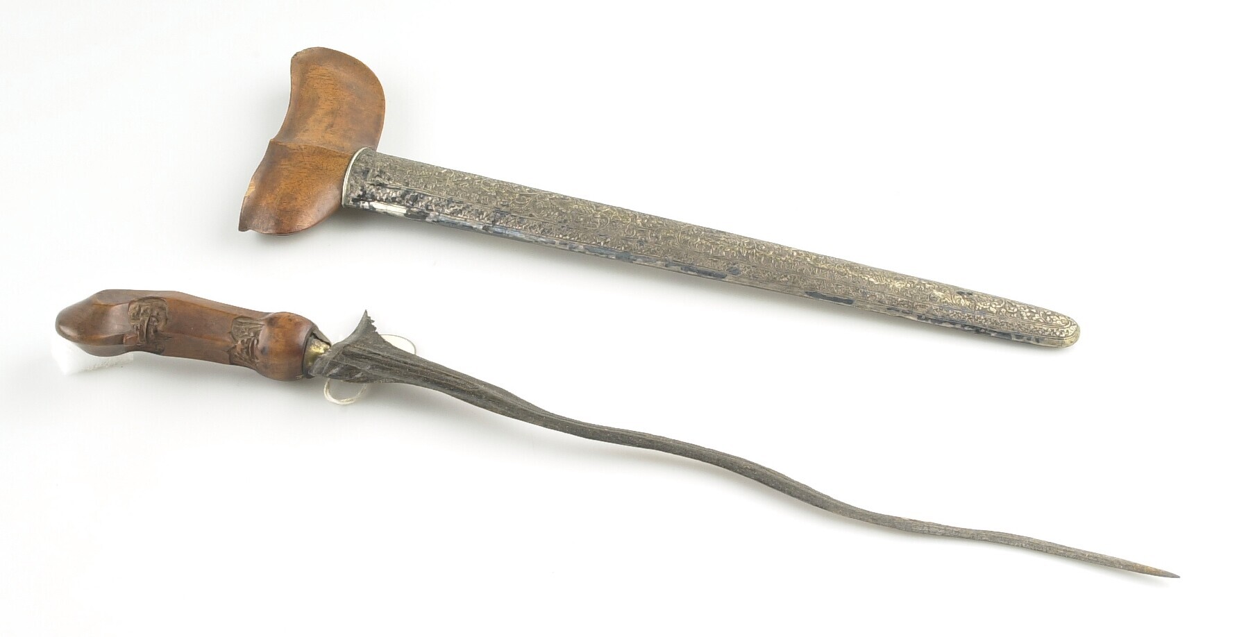 Gegolfde kris met houten greep en houten schede met ...