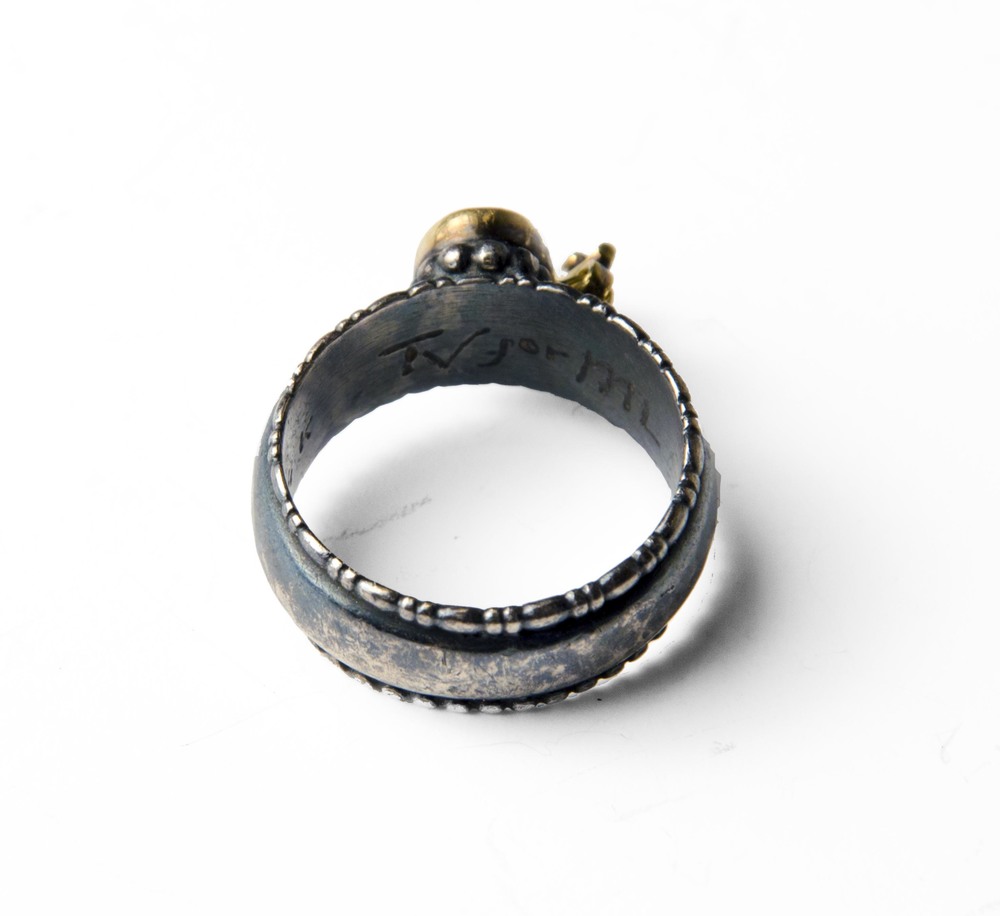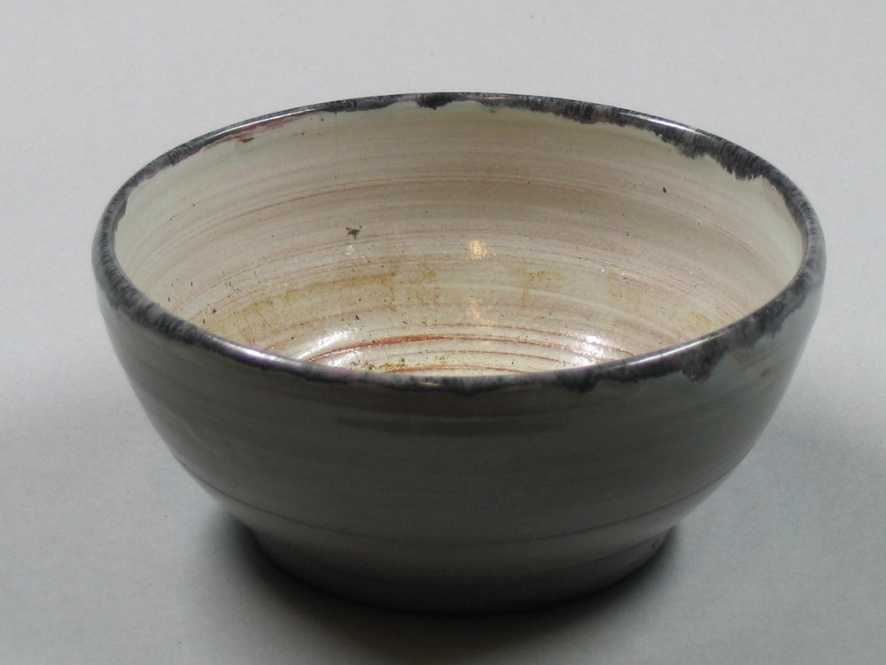 kom van keramiek, grijs met zwarte rand, binnenkant ...