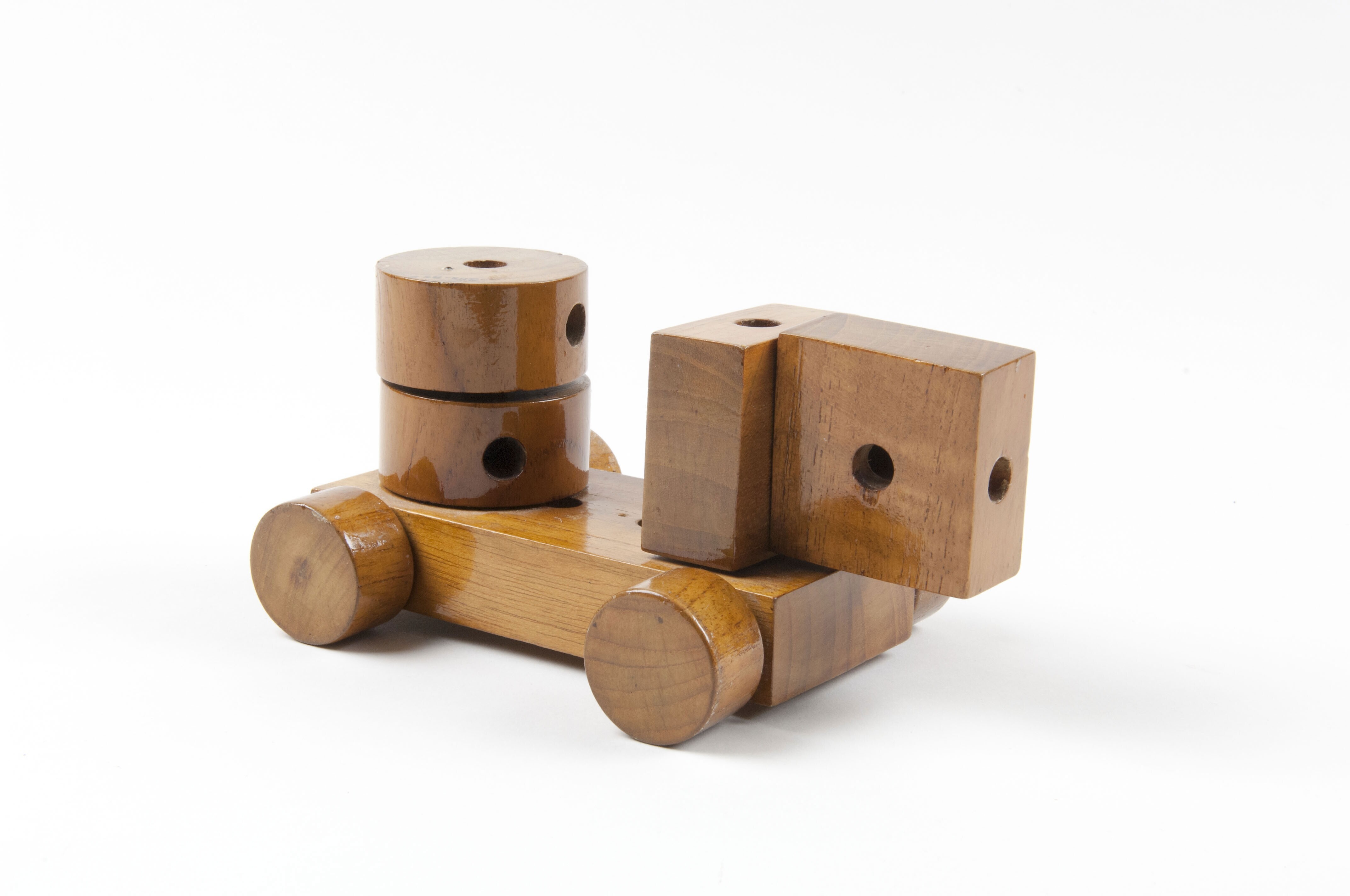 Houten speelgoedauto bestaande uit vijf onderdelen