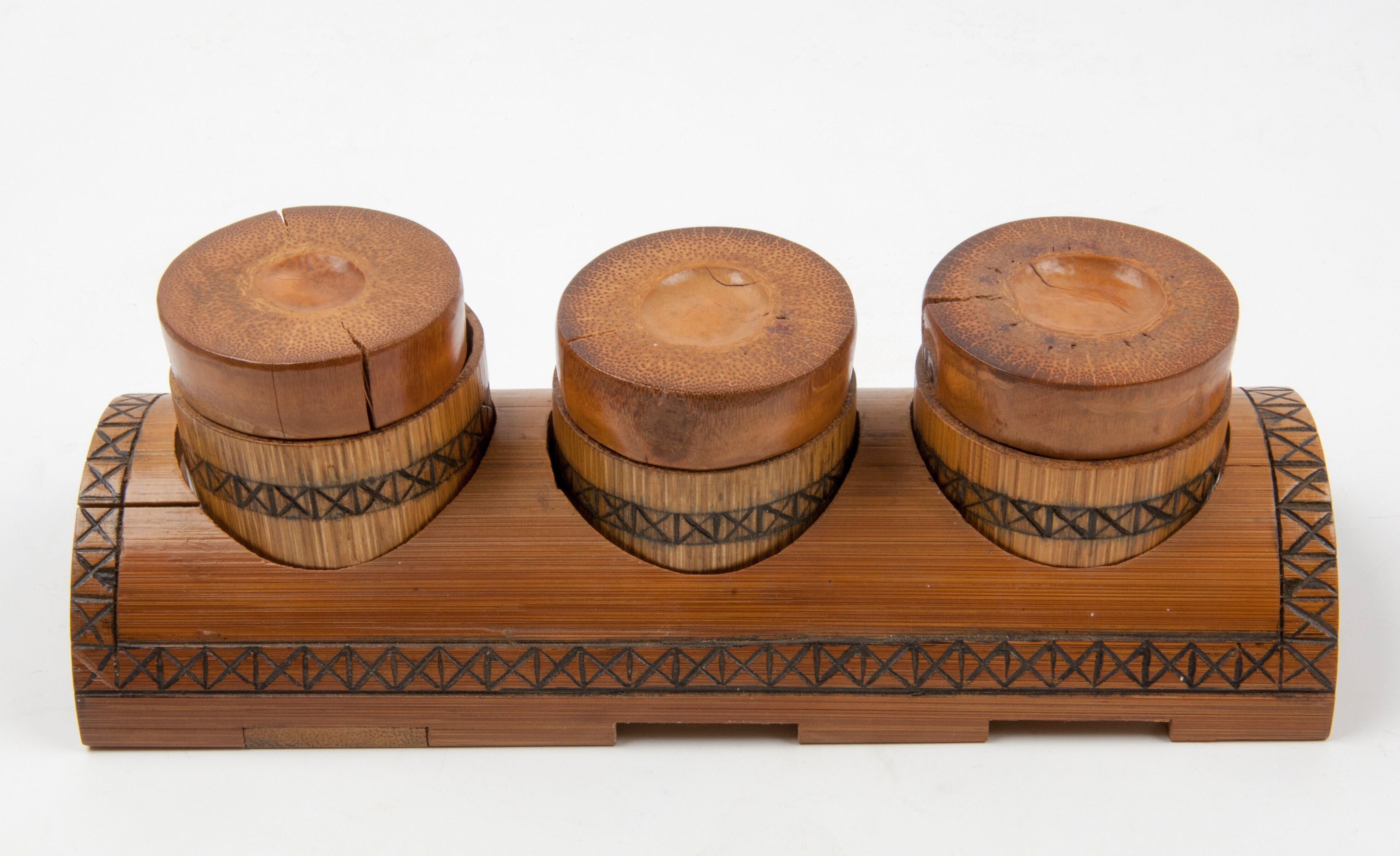 Bamboe houder van een kruidenstel met 3 vaatjes