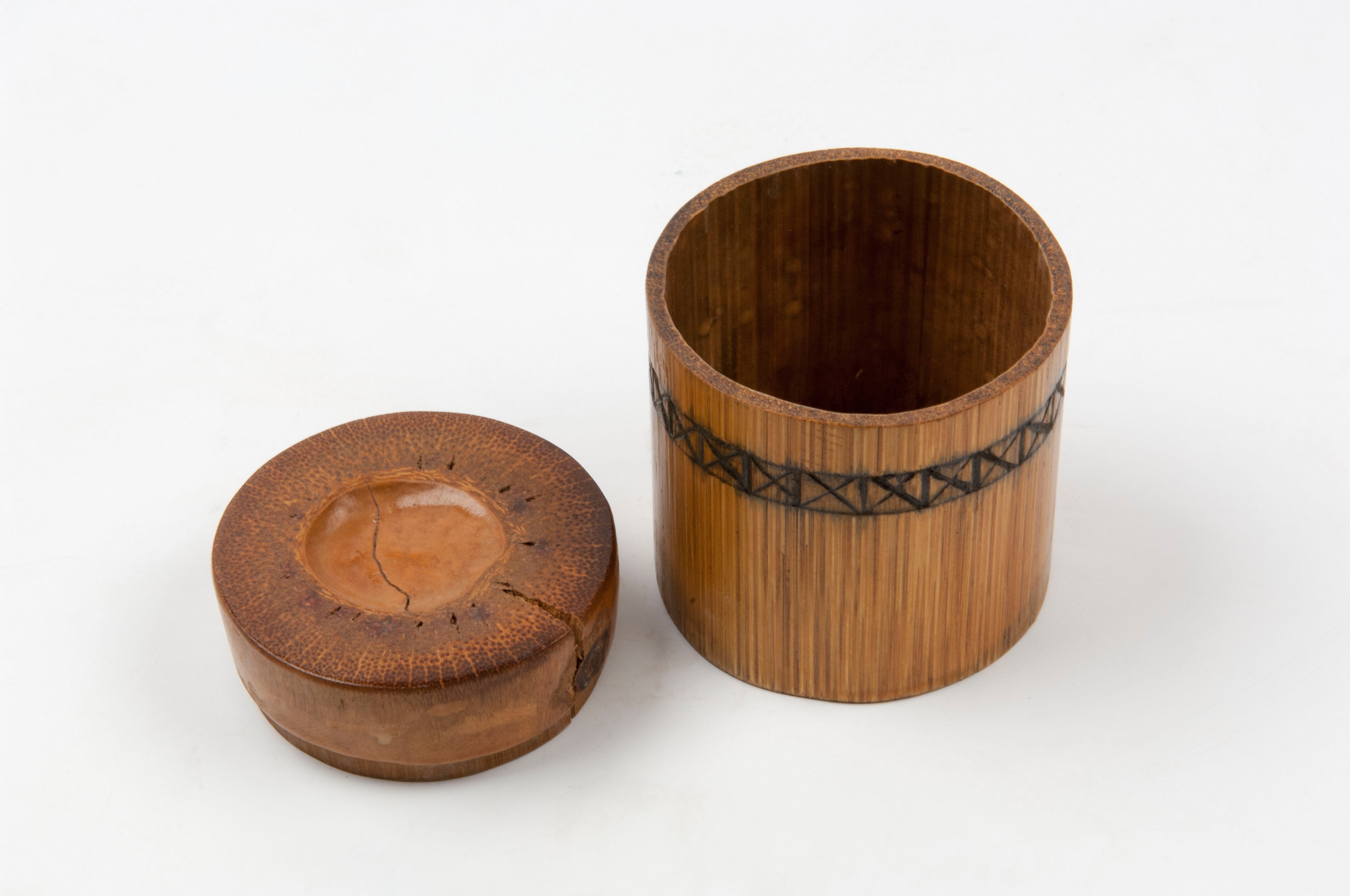 Bamboe deksel van een pot, onderdeel van een kruiden...